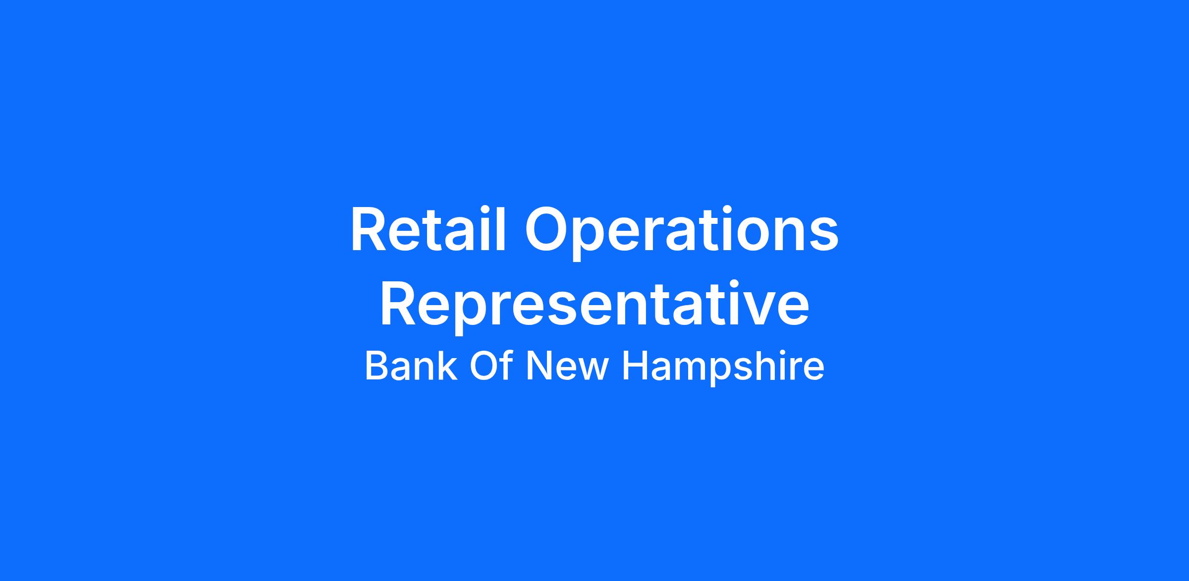 At Bank of New Hampshire, we are committed to delivering exceptional service and support to our customers, employees, and communities. As the oldest and largest independent bank headquartered in the state, we pride ourselves on our integrity, customer focus, and community involvement. We are currently seeking an experienced, detail-oriented and dependable Retail Operations Representative to join our Retail Operations team.