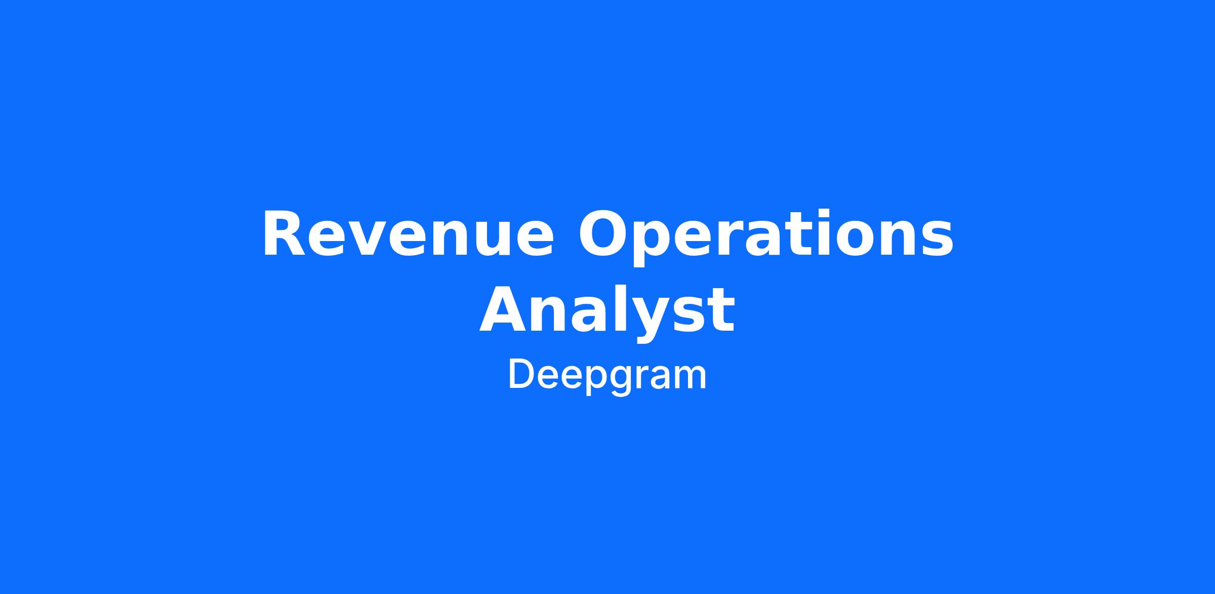 Deepgram is hiring a Revenue Operations Analyst to join our RevOps team at a rapidly scaling AI company. This is a hands-on role, focused on executing and improving the systems and processes that power our revenue engine.