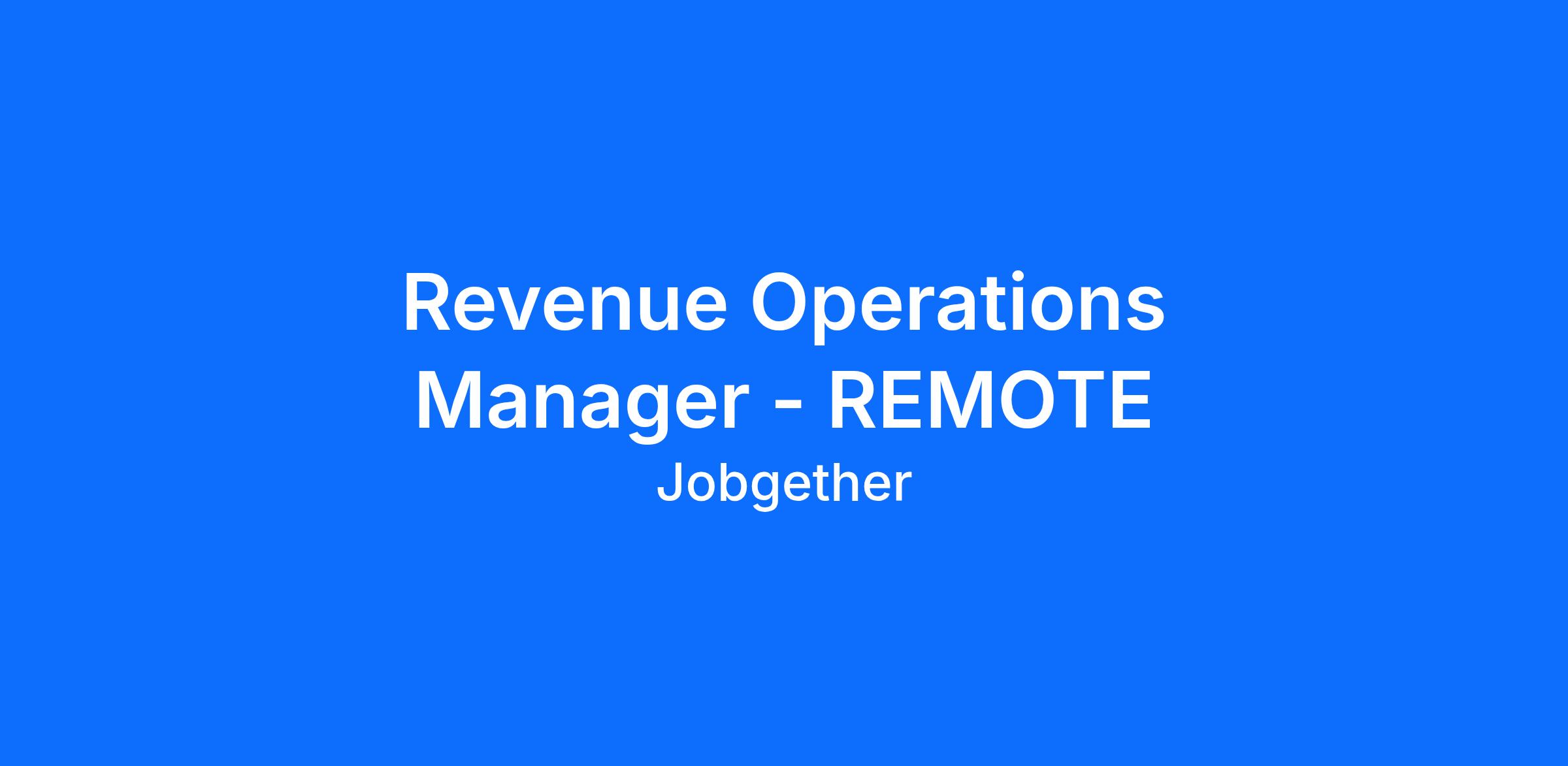 Revenue Operations Manager - REMOTE