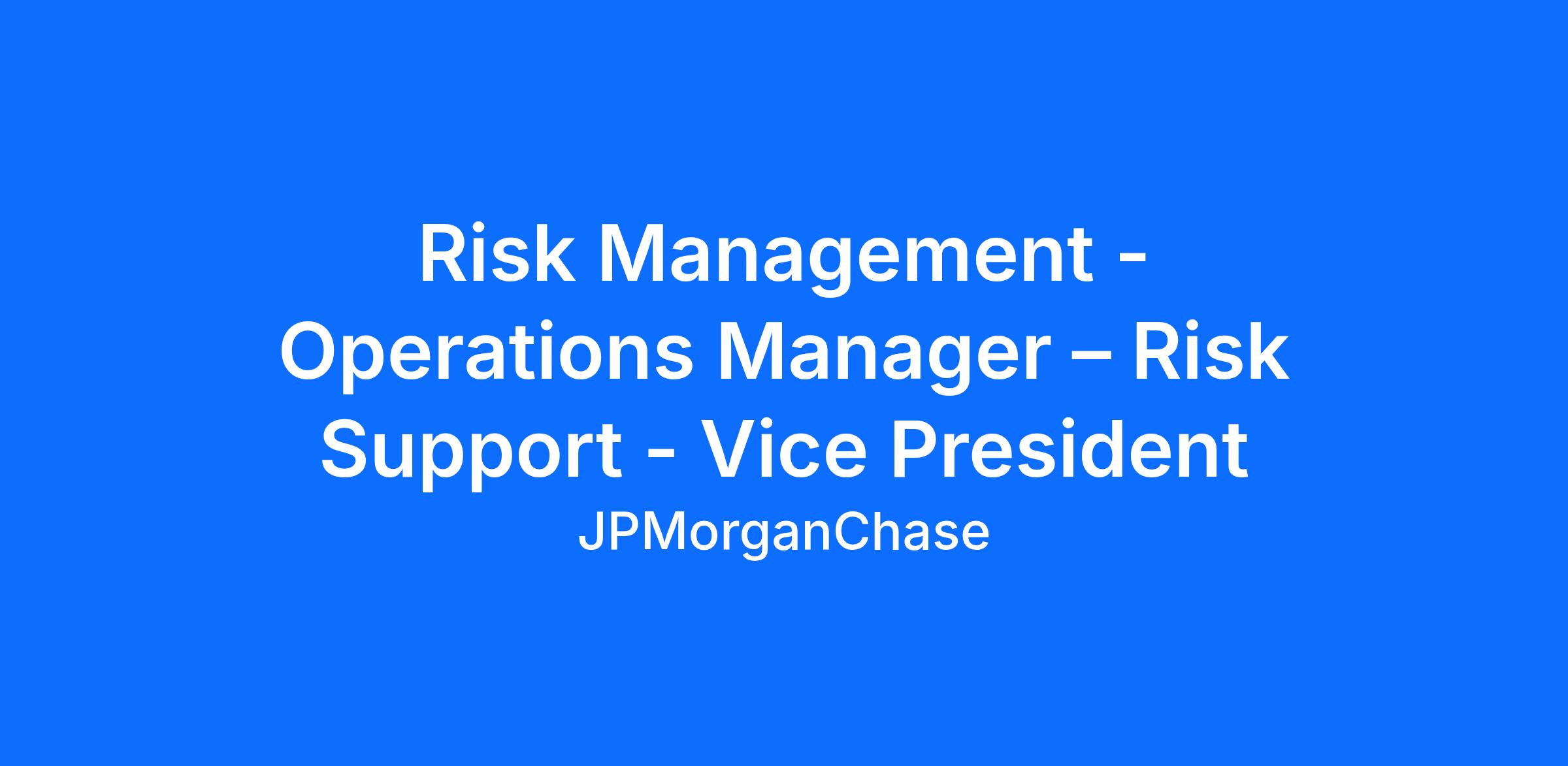 DescriptionIntroductory marketing language Bring your Expertise to JPMorgan Chase. As part of Risk Management and Compliance, you are at the center of keeping JPMorgan Chase strong and resilient. You help the firm grow its business in a responsible way by anticipating new and emerging risks, and using your expert judgement to solve real-world challenges that impact our company, customers and communities. Our culture in Risk Management and Compliance is all about thinking outside the box, challenging the status quo and striving to be best-in-class.