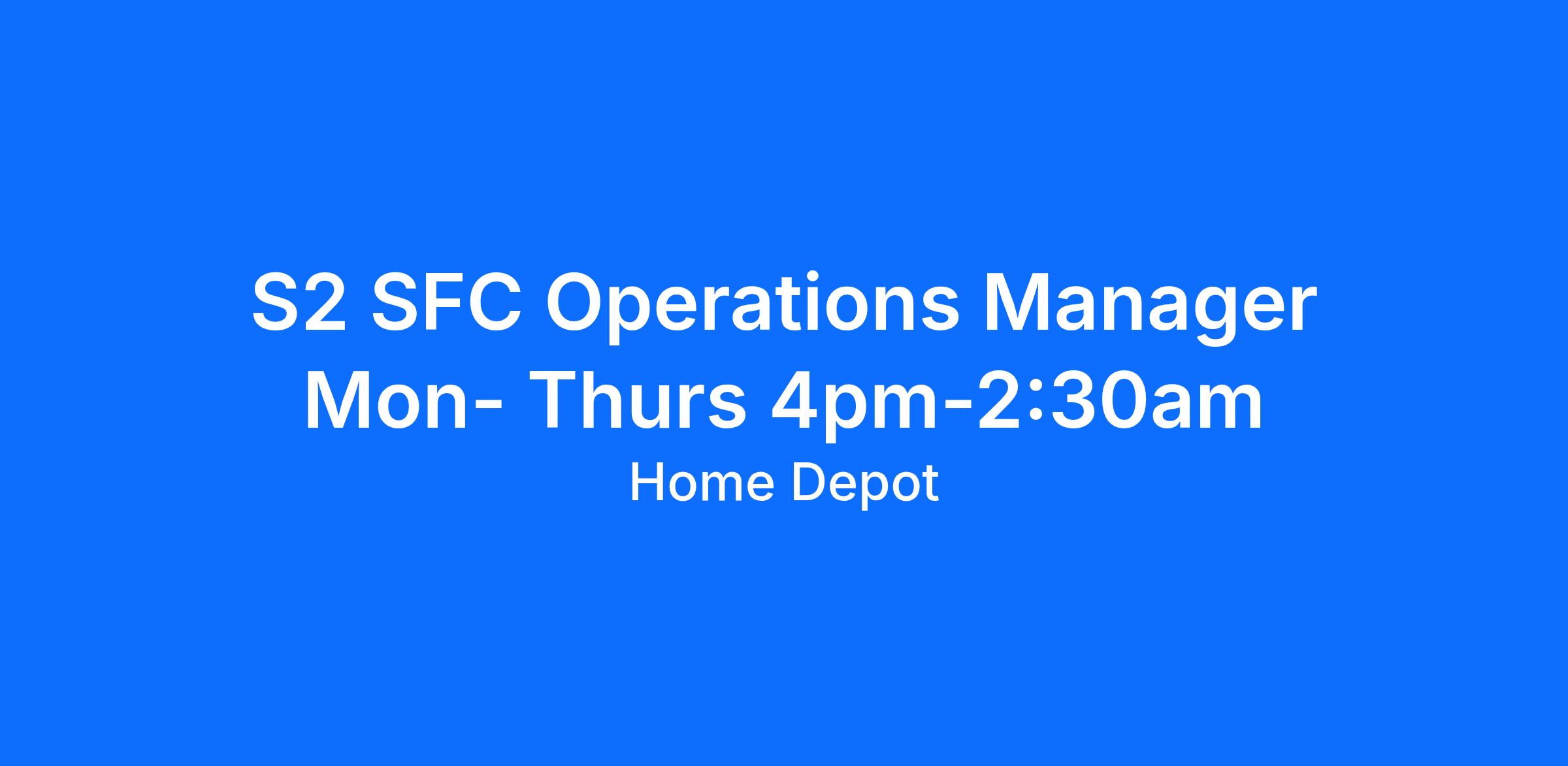S2 SFC Operations Manager Mon- Thurs 4pm-2:30am