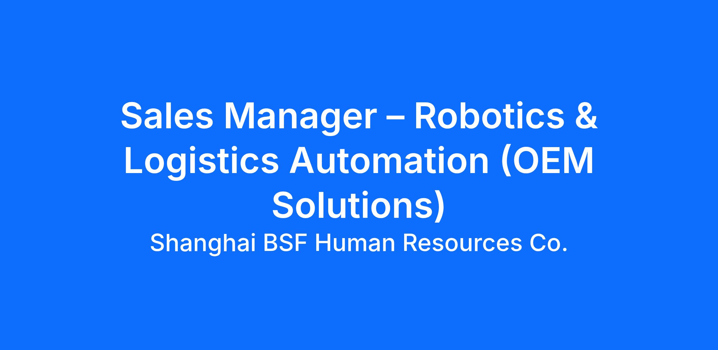 Industry Expertise: 5+ years of proven success selling to Robotics OEMs or Logistics/Material Handling equipment manufacturers.