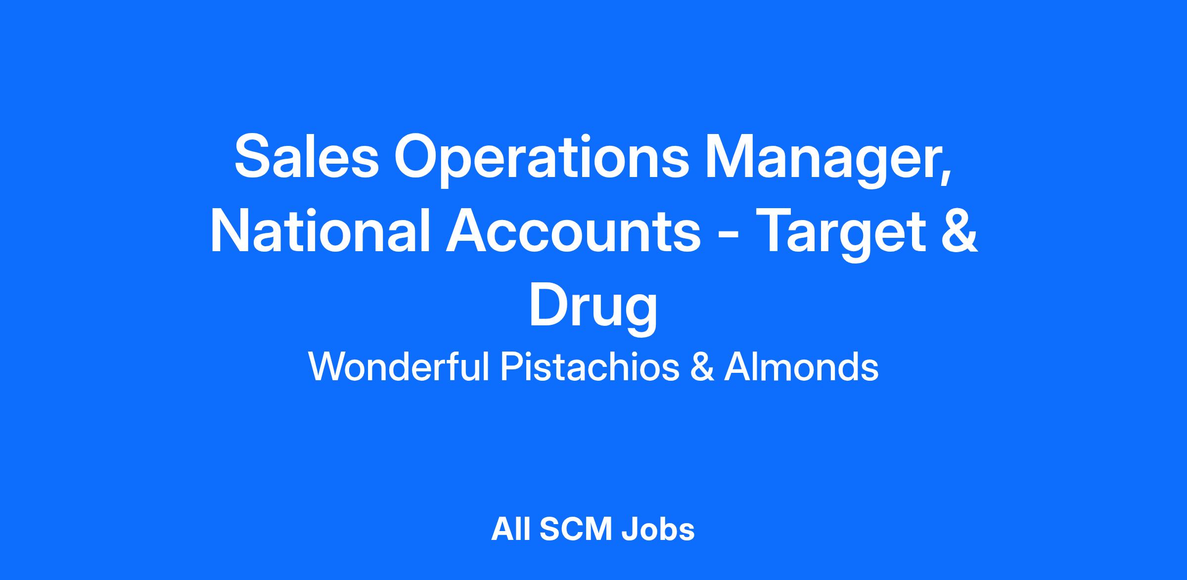 The Sales Operations Manager, National Accounts is responsible for leading the sales operations and analytical sales planning to drive sales growth, execute strategic initiatives, and strengthen the customer relationships with all US Target stores and the Drug Channel (Walgreens & CVS) across 3 business units at Wonderful: Wonderful Pistachios, POM Wonderful and FIJI Water. The ideal candidate will have experience in retail sales, account management, data analytics, and/or customer-facing roles within a consumer goods environment. They will ensure excellence in business planning, forecasting, reporting, trade management, and cross-functional execution.