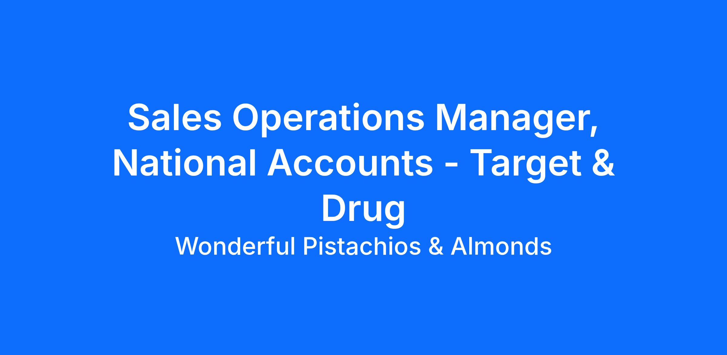 The Sales Operations Manager, National Accounts is responsible for leading the sales operations and analytical sales planning to drive sales growth, execute strategic initiatives, and strengthen the customer relationships with all US Target stores and the Drug Channel (Walgreens & CVS) across 3 business units at Wonderful: Wonderful Pistachios, POM Wonderful and FIJI Water. The ideal candidate will have experience in retail sales, account management, data analytics, and/or customer-facing roles within a consumer goods environment. They will ensure excellence in business planning, forecasting, reporting, trade management, and cross-functional execution.