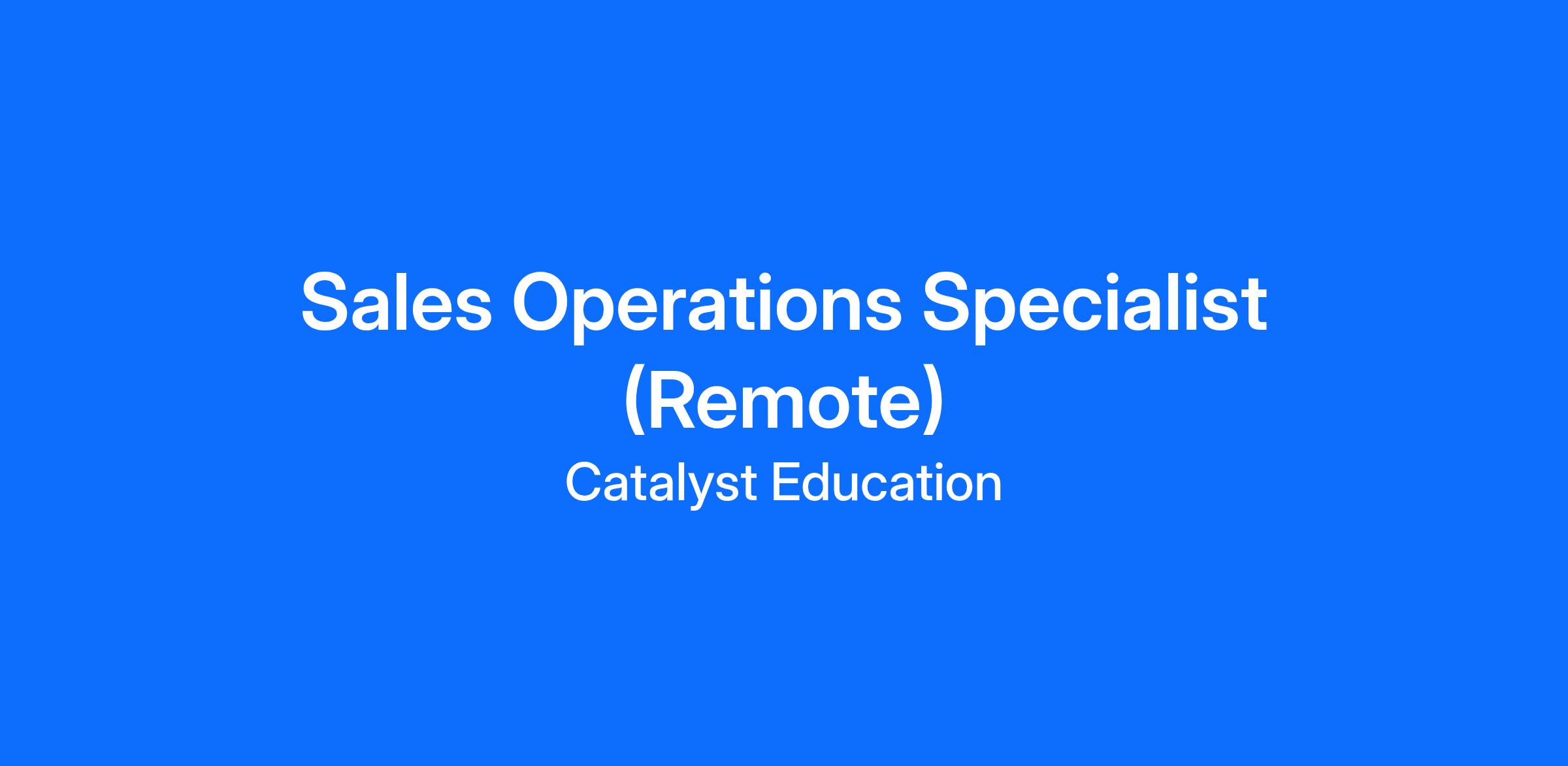 The Mission: Catalyst Education is transforming how college students are motivated to persist through their education with high-quality digital learning tools. As we scale, we need a builder to construct our sales operations backbone.