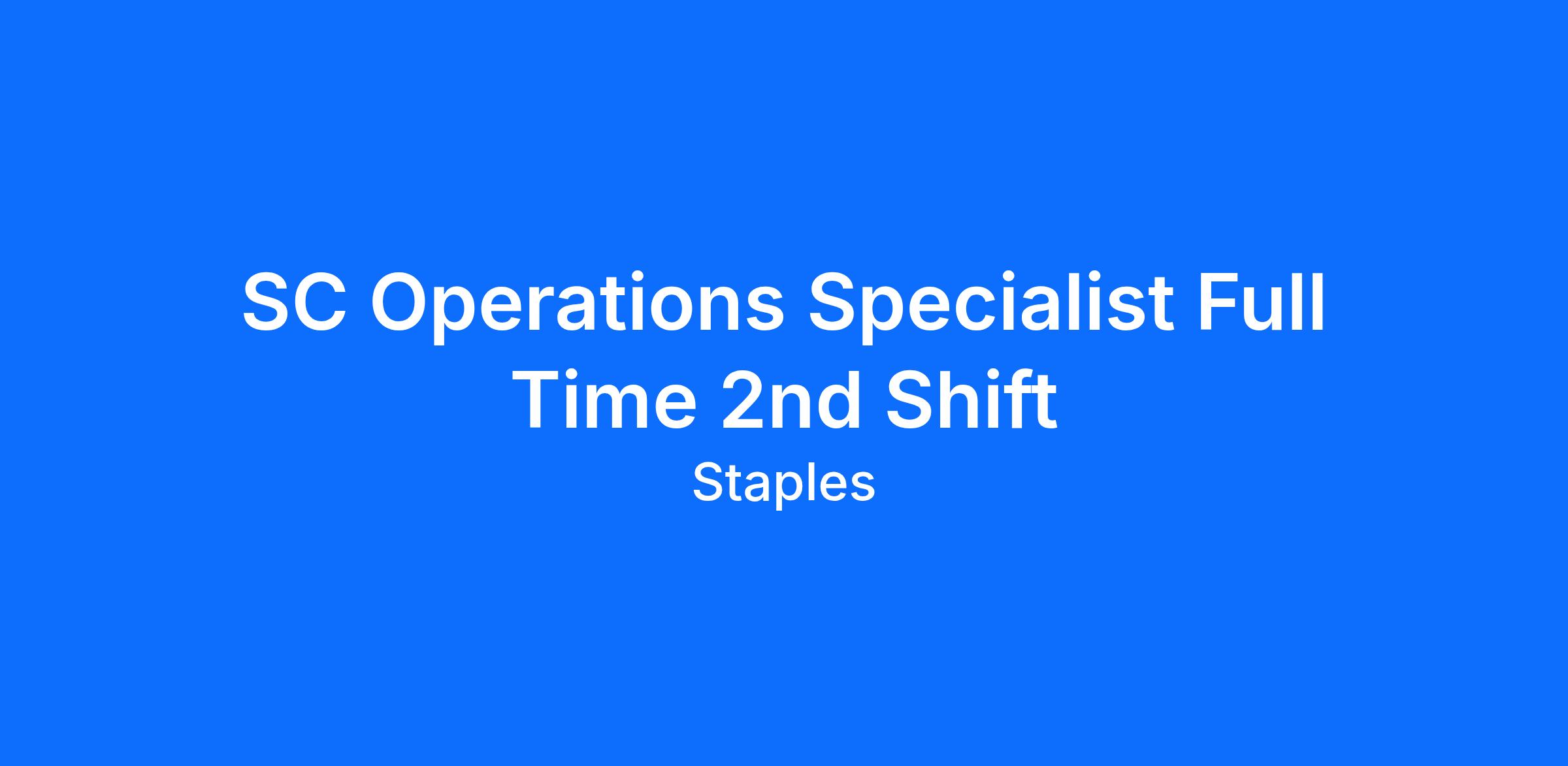SC Operations Specialist Full Time 2nd Shift