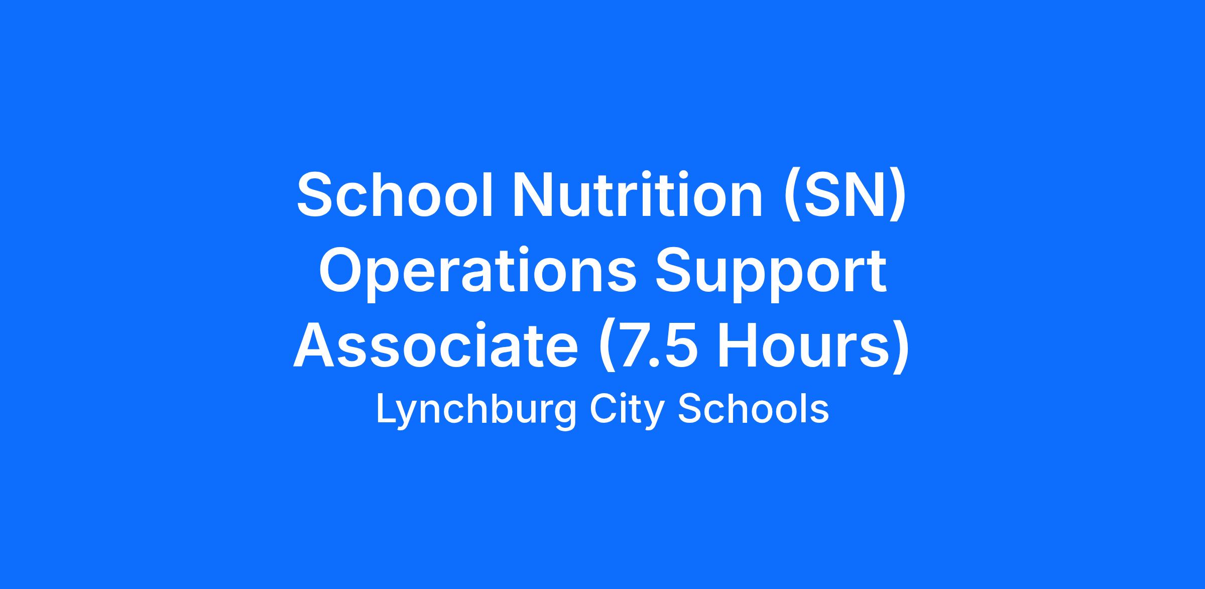 | School Nutrition Operations Support Associate (7.5 Hours) |