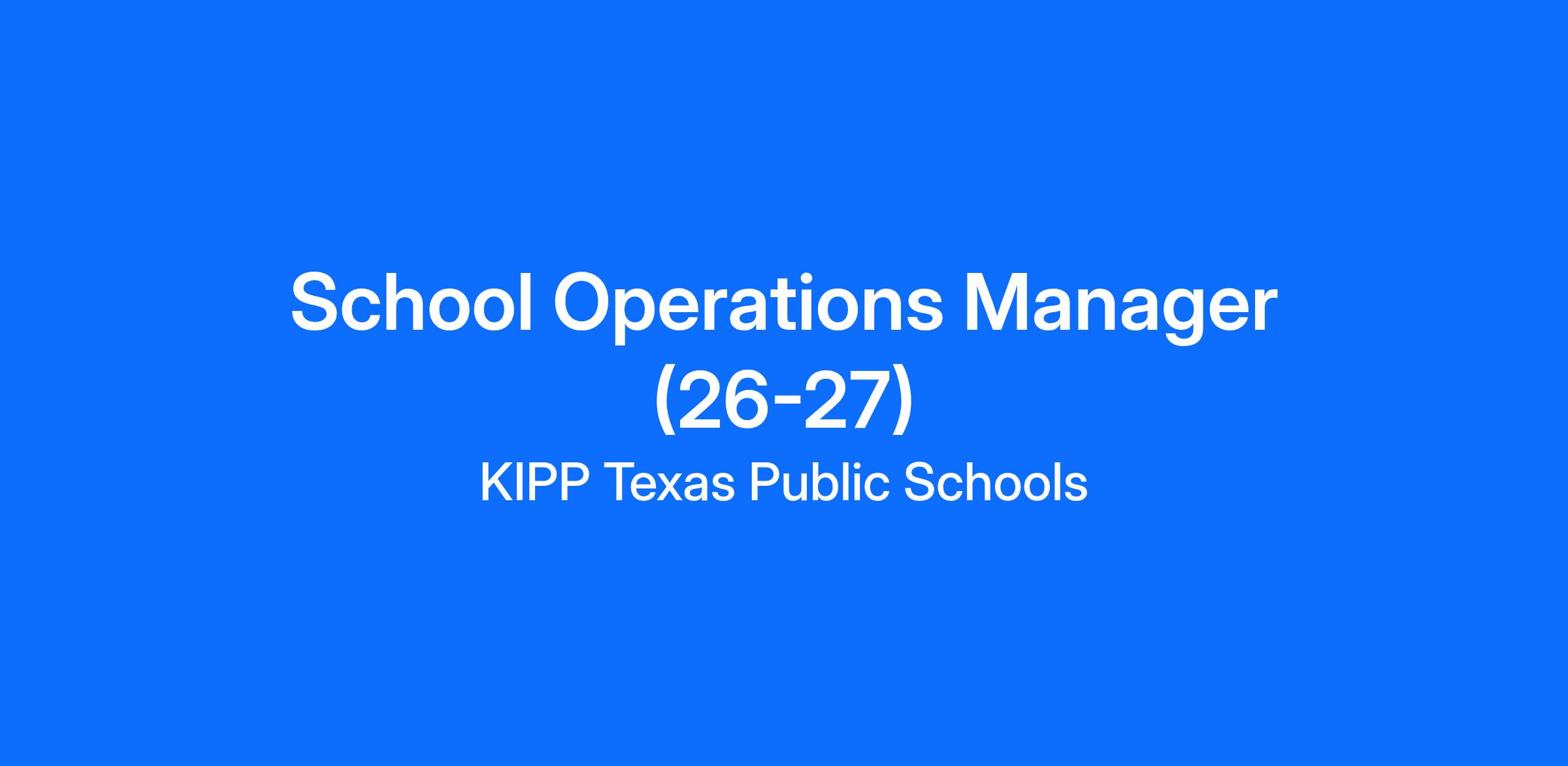 ***Job Status: Please note that this is a general posting for current and potential future opportunities. At this time, there may or may not be a vacancy. We are collecting applications on a rolling basis and encourage you to apply. Your application will be reviewed and considered for any opportunity that matches your skills and experience. Please be aware that you may not receive communication regarding next steps until an aligned opportunity becomes available. We appreciate your interest in the role and KIPP Texas.***