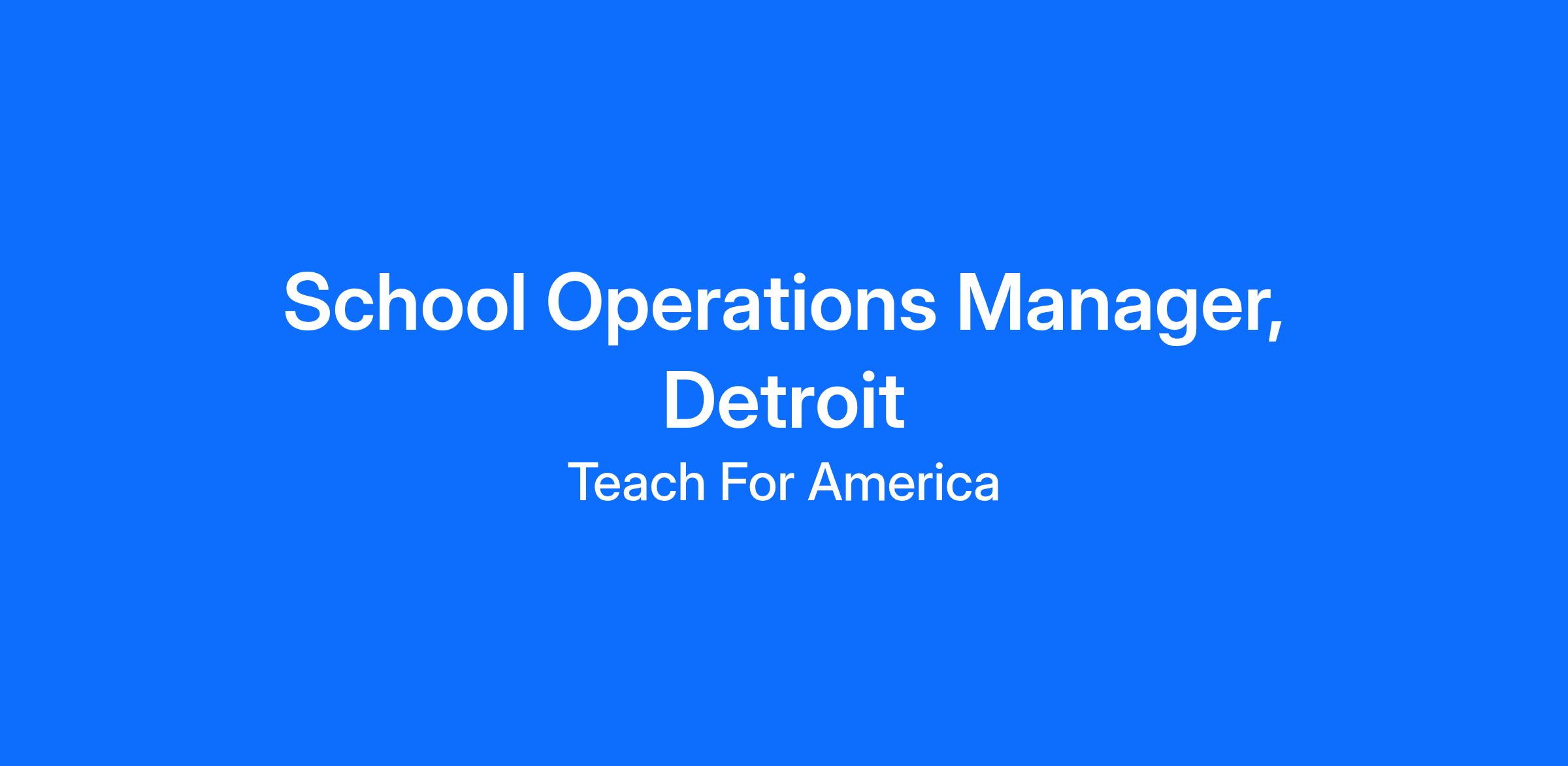 ROLE TITLE: School Operations Manager, Detroit