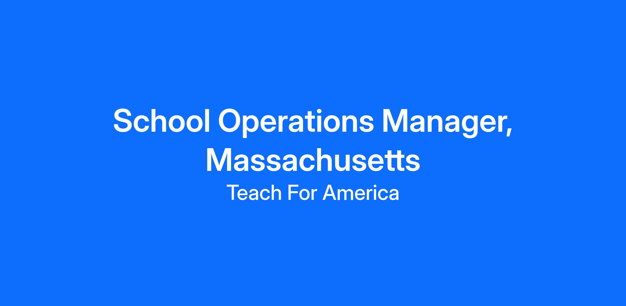 ROLE TITLE: School Operations Manager, Massachusetts