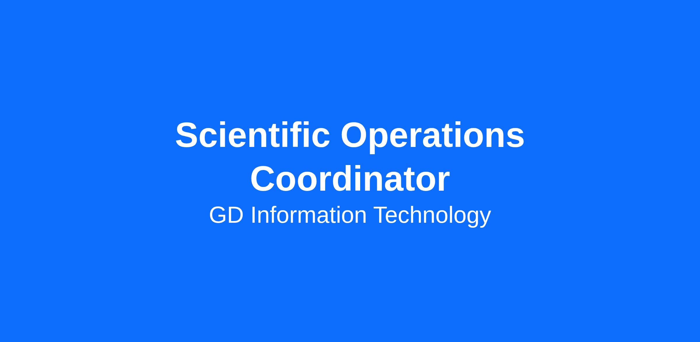 Scientific Operations Coordinator