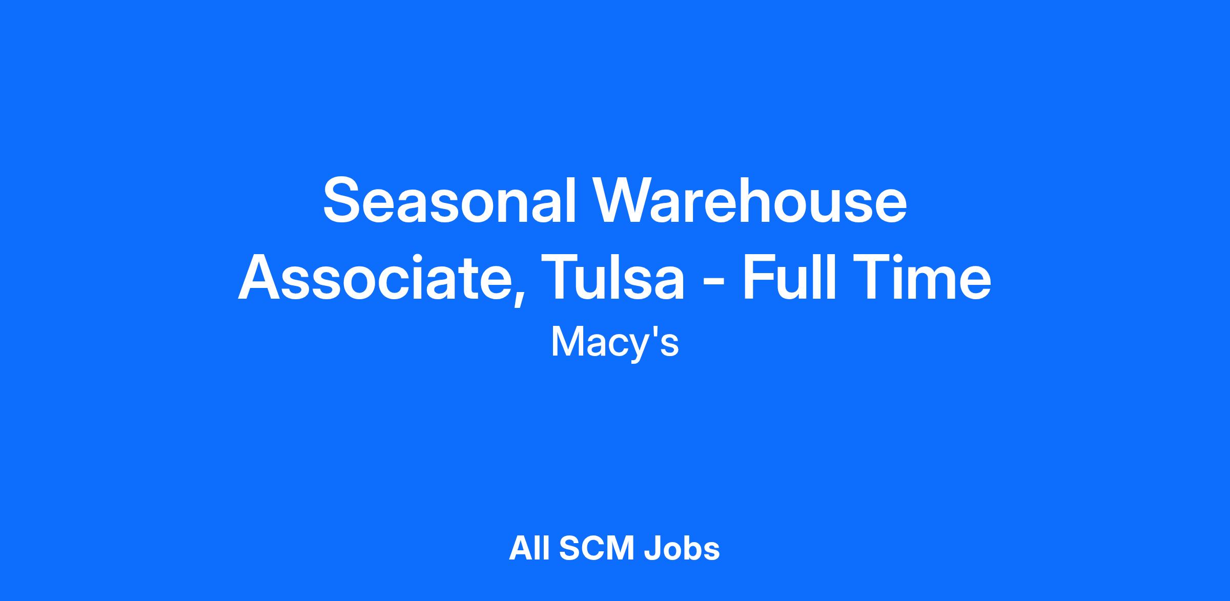 Seasonal Warehouse Associate, Tulsa - Full Time