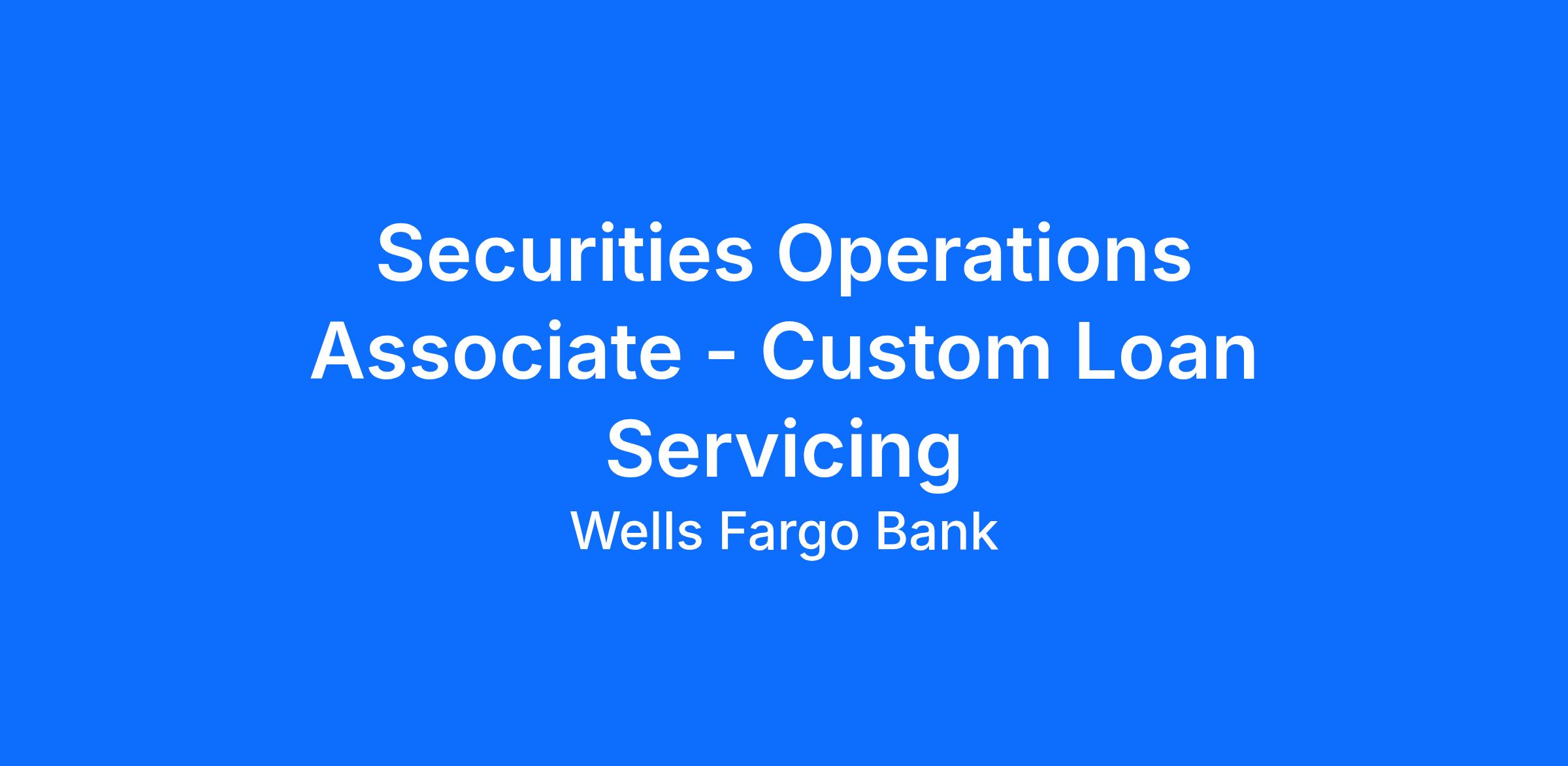 Wells Fargo is seeking a Securities Operations Specialist supporting Commercial Loan Operations Money Movement within Wealth & Investment Management Operation division. Learn more about the career areas and lines of business at wellsfargojobs.com.