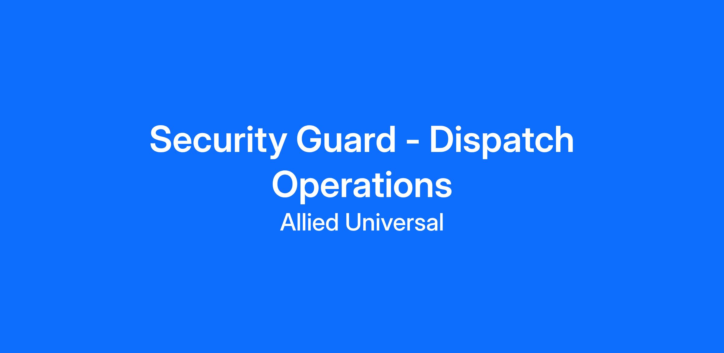 Allied Universal® is an Equal Opportunity Employer. All qualified applicants will receive consideration for employment without regard to race/ethnicity, age, color, religion, sex, sexual orientation, gender identity, national origin, genetic information, disability, protected veteran status or relationship/association with a protected veteran, or any other basis or characteristic protected by law. For more information: www.aus.com.