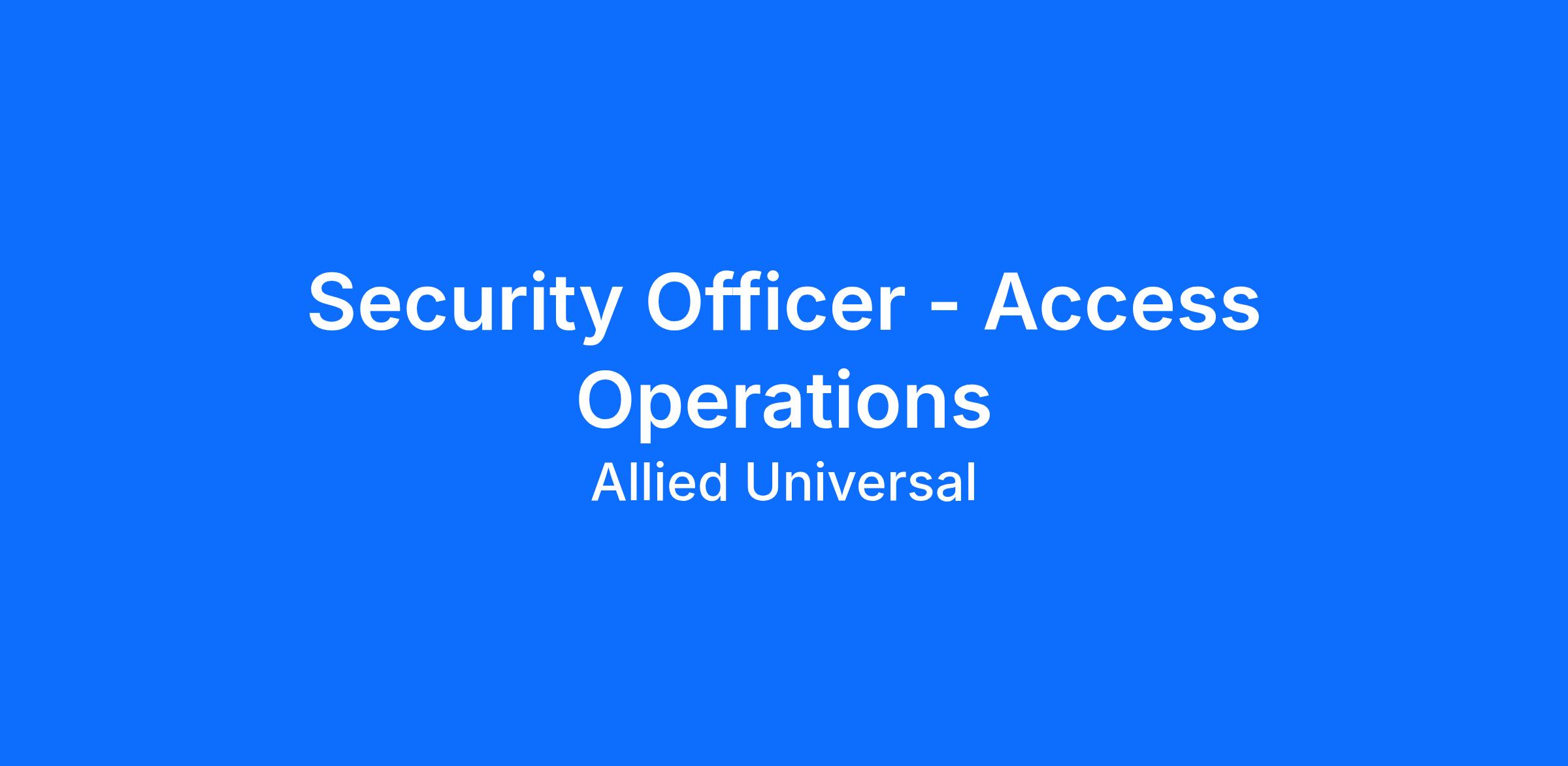 Allied Universal® is an Equal Opportunity Employer. All qualified applicants will receive consideration for employment without regard to race/ethnicity, age, color, religion, sex, sexual orientation, gender identity, national origin, genetic information, disability, protected veteran status or relationship/association with a protected veteran, or any other basis or characteristic protected by law. For more information: www.aus.com.