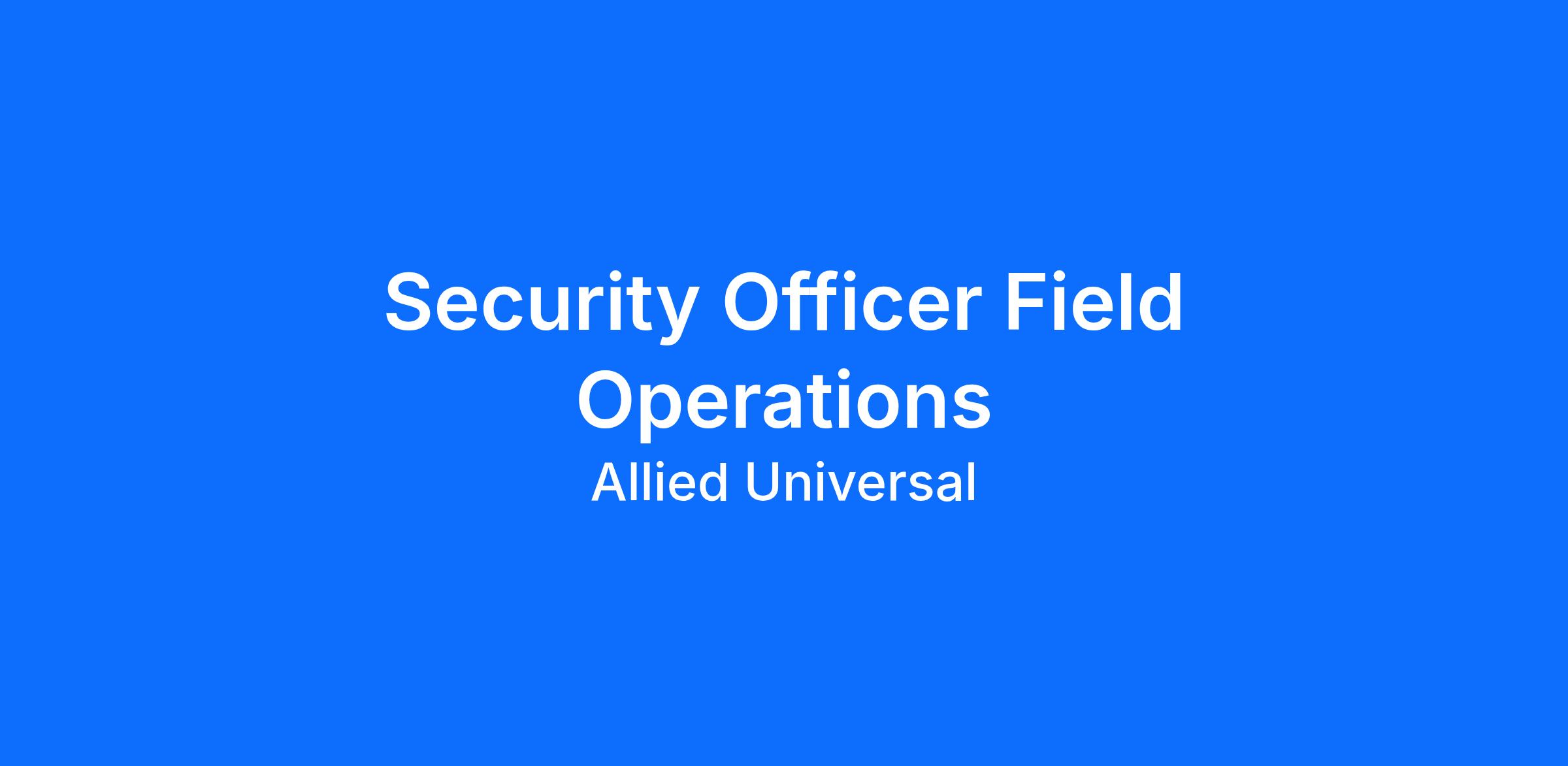 Allied Universal® is an Equal Opportunity Employer. All qualified applicants will receive consideration for employment without regard to race/ethnicity, age, color, religion, sex, sexual orientation, gender identity, national origin, genetic information, disability, protected veteran status or relationship/association with a protected veteran, or any other basis or characteristic protected by law. For more information: www.aus.com.