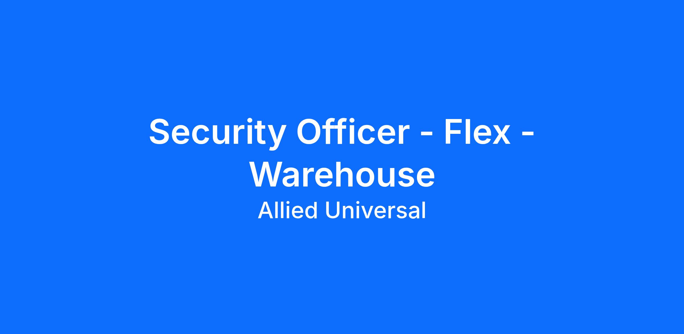 As a Security Officer - Flex - Warehouse in Monee, IL, you will serve and safeguard clients in a range of industries such as Tech/Media/Telecom, and more. Join a leading team where flexibility meets opportunity. As a Flex Part-Time Security Officer, you can build a schedule that works for you and explore new roles using our Claim a Shift platform. Learn more: aus.com/earnmore. As a Patrol Unarmed Officer at a leading tech, media, and telecom location, you will actively monitor and patrol assigned areas to help deter security-related incidents. Your visible presence and commitment to exceptional customer service will contribute to a welcoming environment. This is a driving post, so a valid driver's license is required. Join Allied Universal, where we value teamwork, integrity, and a people-first approach to delivering reliable and innovative solutions.