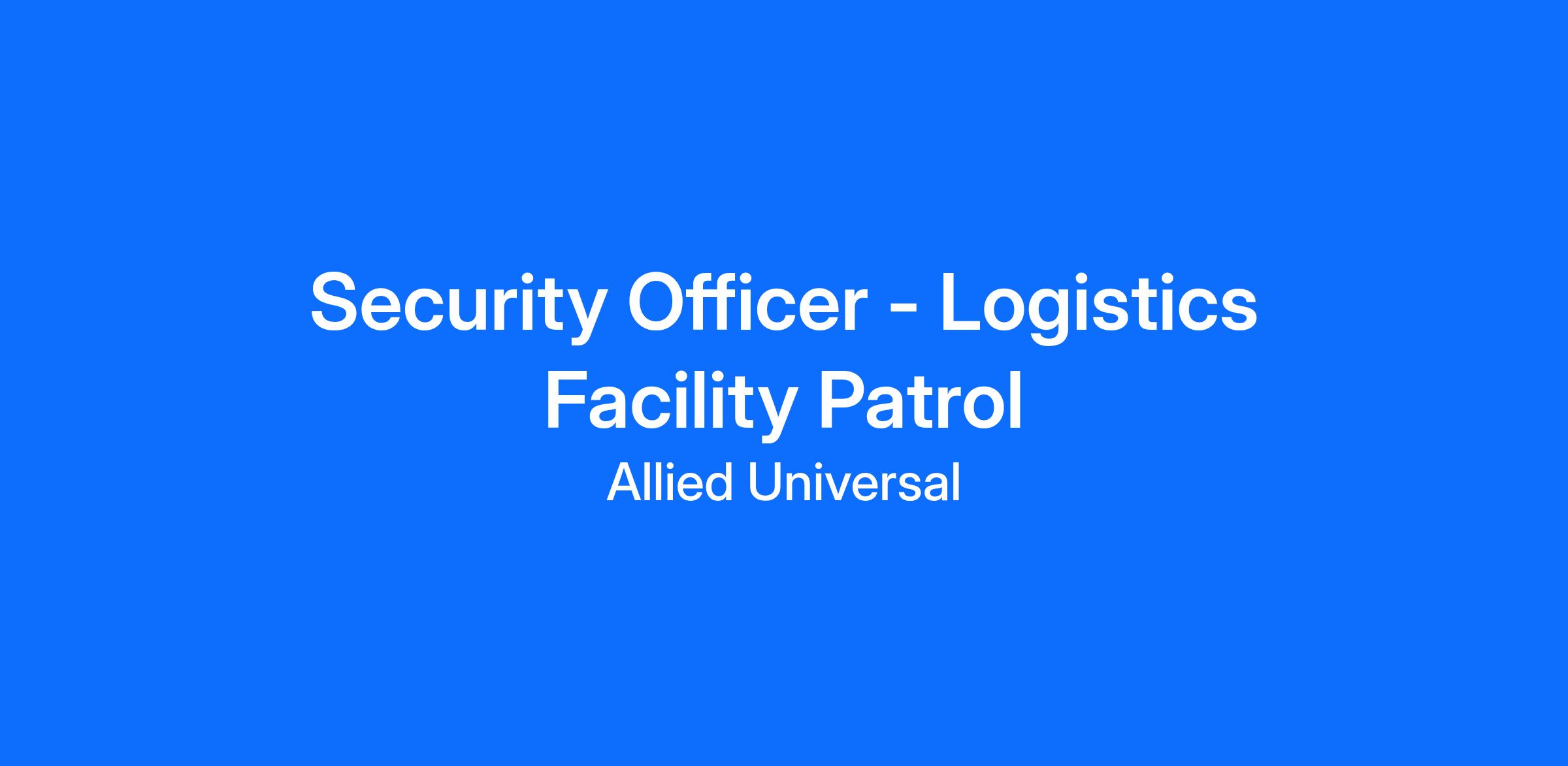 As a Security Officer - Logistics Facility Patrol in Louisville, KY, you will serve and safeguard clients in a range of industries such as Logistics & Distribution, and more. As a Patrol Unarmed Officer with Allied Universal, you will monitor and patrol assigned logistics and distribution locations, helping to deter security-related incidents while maintaining a strong visible presence. You will provide exceptional customer service and clear communication, supporting a positive environment for all personnel. Join a team that values agility, reliability, and innovation, and experience a caring culture where people come first and teamwork drives our success.