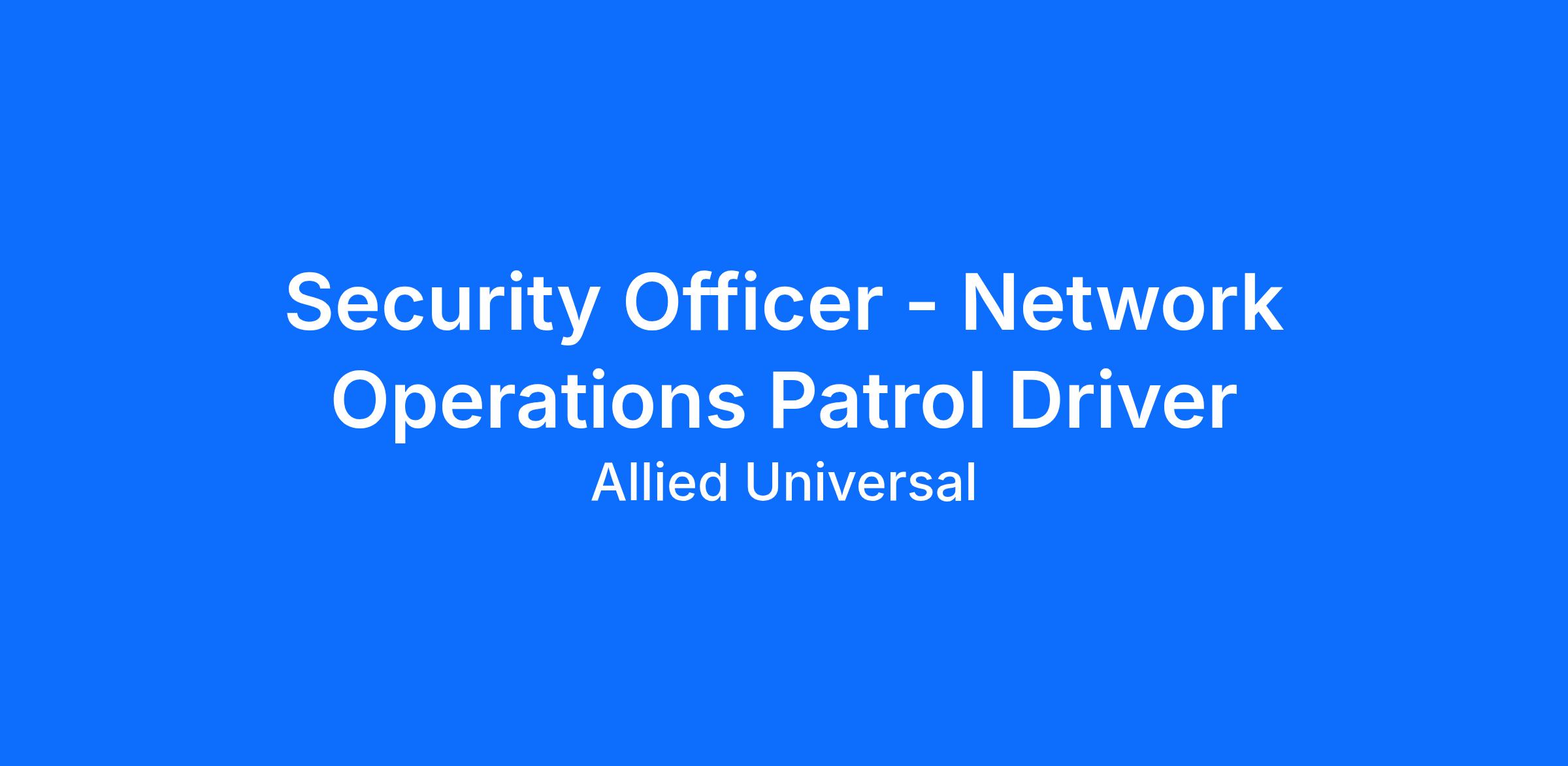 As a Security Officer - Network Operations Patrol Driver in Chesapeake, VA, you will serve and safeguard clients in a range of industries such as Tech/Media/Telecom, and more. Join a leading team where flexibility meets opportunity. As a Part-Time Security Officer, you can build a schedule that works for you and explore new roles using our Claim a Shift platform. Learn more: aus.com/earnmore. As an unarmed, driving Patrol Officer at a dynamic tech, media, and telecom location, you will conduct routine vehicle and foot patrols, remain highly visible to help to deter security-related incidents, and respond to calls for service with clear communication and customer-focused support. At Allied Universal, you will bring an agile, reliable, and innovative approach, working as a team with integrity in a people-first culture.