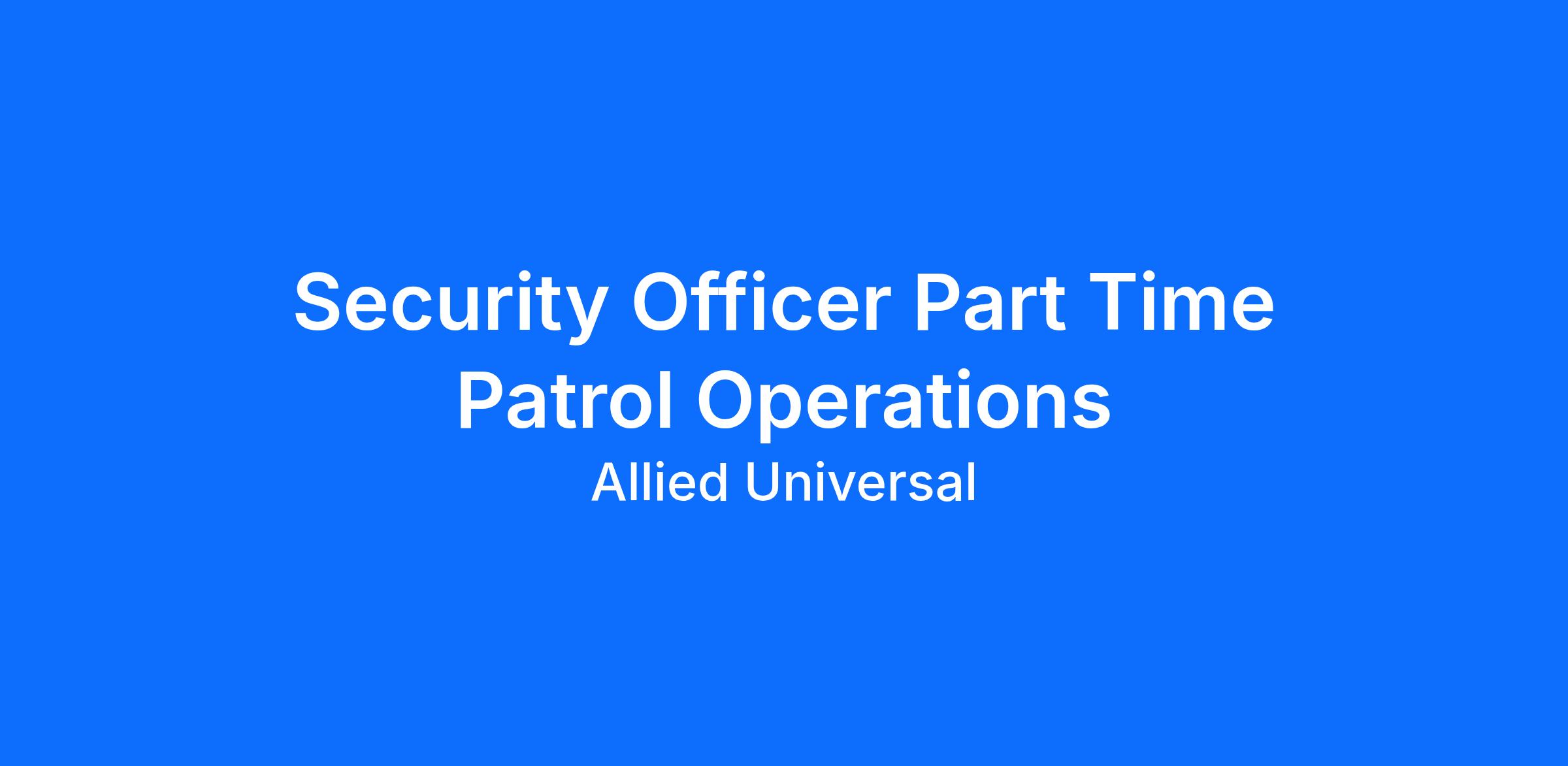 As a Security Officer Part Time Patrol Operations in Purchase, NY, you will serve and safeguard clients in a range of industries such as Financial Institutions, and more. Join a leading team where flexibility meets opportunity. As a Part-Time Security Officer, you can build a schedule that works for you and explore new roles using our Claim a Shift platform. Learn more: aus.com/earnmore. Join Allied Universal as an unarmed officer at a leading financial institution location, where you will monitor and patrol assigned areas, maintain a visible presence to help to deter security-related incidents, and deliver outstanding customer service. In this dynamic role, you will support daily operations through strong communication, teamwork, and integrity while contributing to a caring, reliable, and innovative workplace.