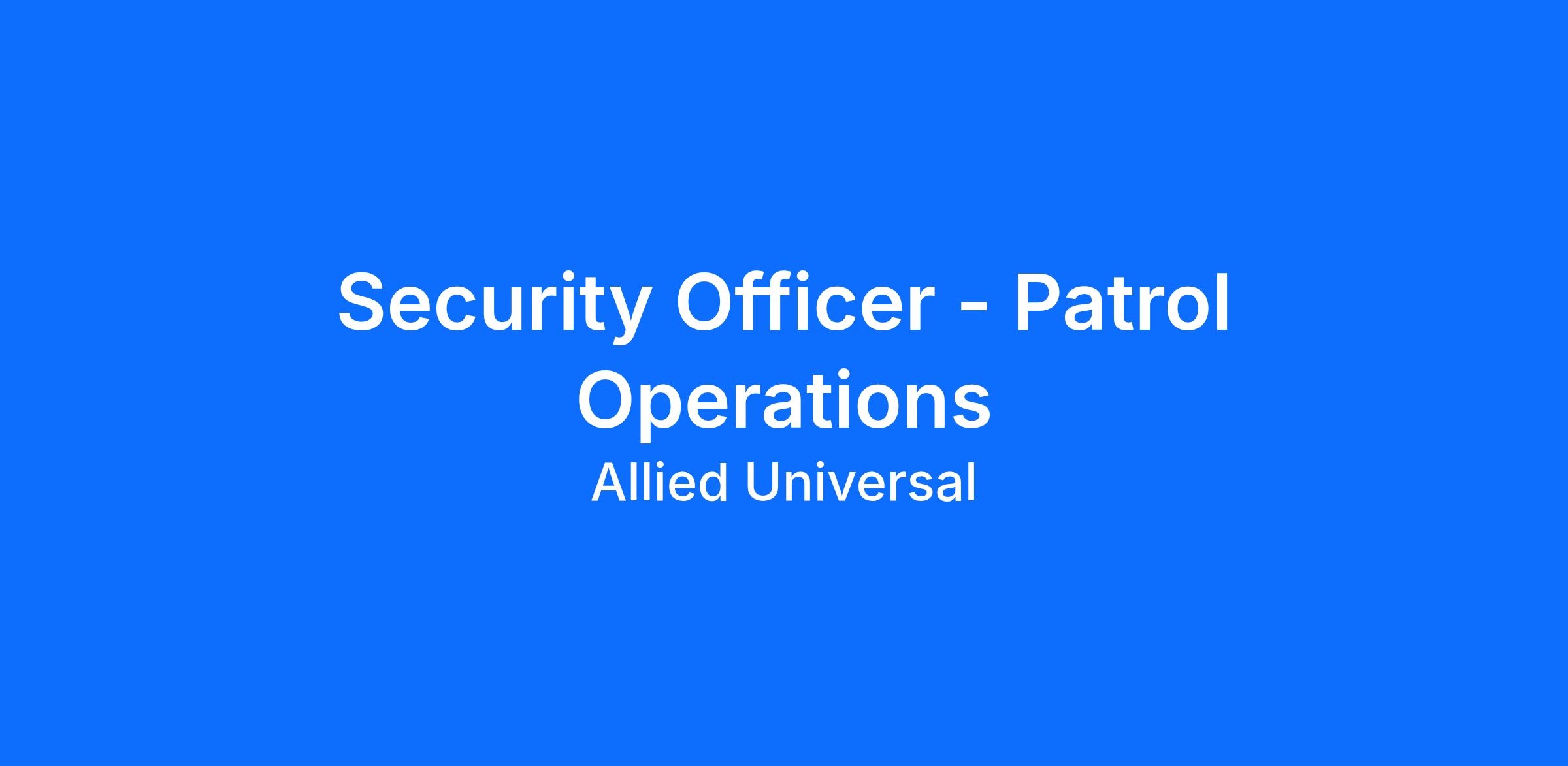 Allied Universal® is an Equal Opportunity Employer. All qualified applicants will receive consideration for employment without regard to race/ethnicity, age, color, religion, sex, sexual orientation, gender identity, national origin, genetic information, disability, protected veteran status or relationship/association with a protected veteran, or any other basis or characteristic protected by law. For more information: www.aus.com.