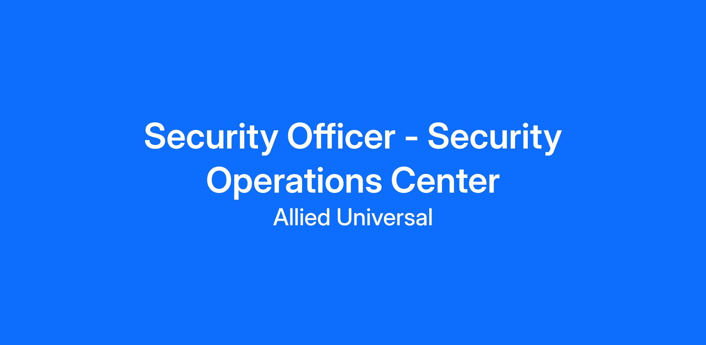 Allied Universal®, North America’s leading security and facility services company, offers rewarding careers that provide you a sense of purpose. While working in a dynamic, welcoming, and collaborative workplace, you will be part of a team that contributes to a culture that positively impacts the communities and customers we serve.