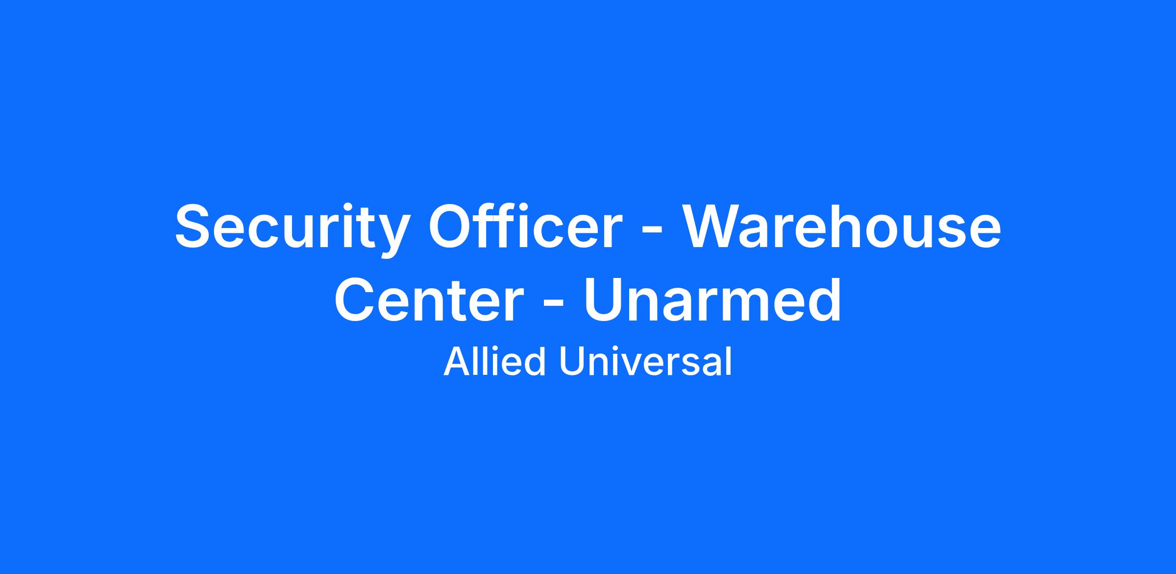 Allied Universal® is an Equal Opportunity Employer. All qualified applicants will receive consideration for employment without regard to race/ethnicity, age, color, religion, sex, sexual orientation, gender identity, national origin, genetic information, disability, protected veteran status or relationship/association with a protected veteran, or any other basis or characteristic protected by law. For more information: www.aus.com.