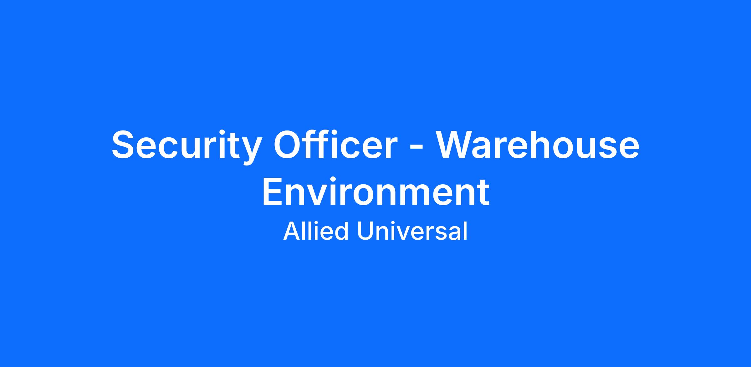 Allied Universal® is an Equal Opportunity Employer. All qualified applicants will receive consideration for employment without regard to race/ethnicity, age, color, religion, sex, sexual orientation, gender identity, national origin, genetic information, disability, protected veteran status or relationship/association with a protected veteran, or any other basis or characteristic protected by law. For more information: www.aus.com.