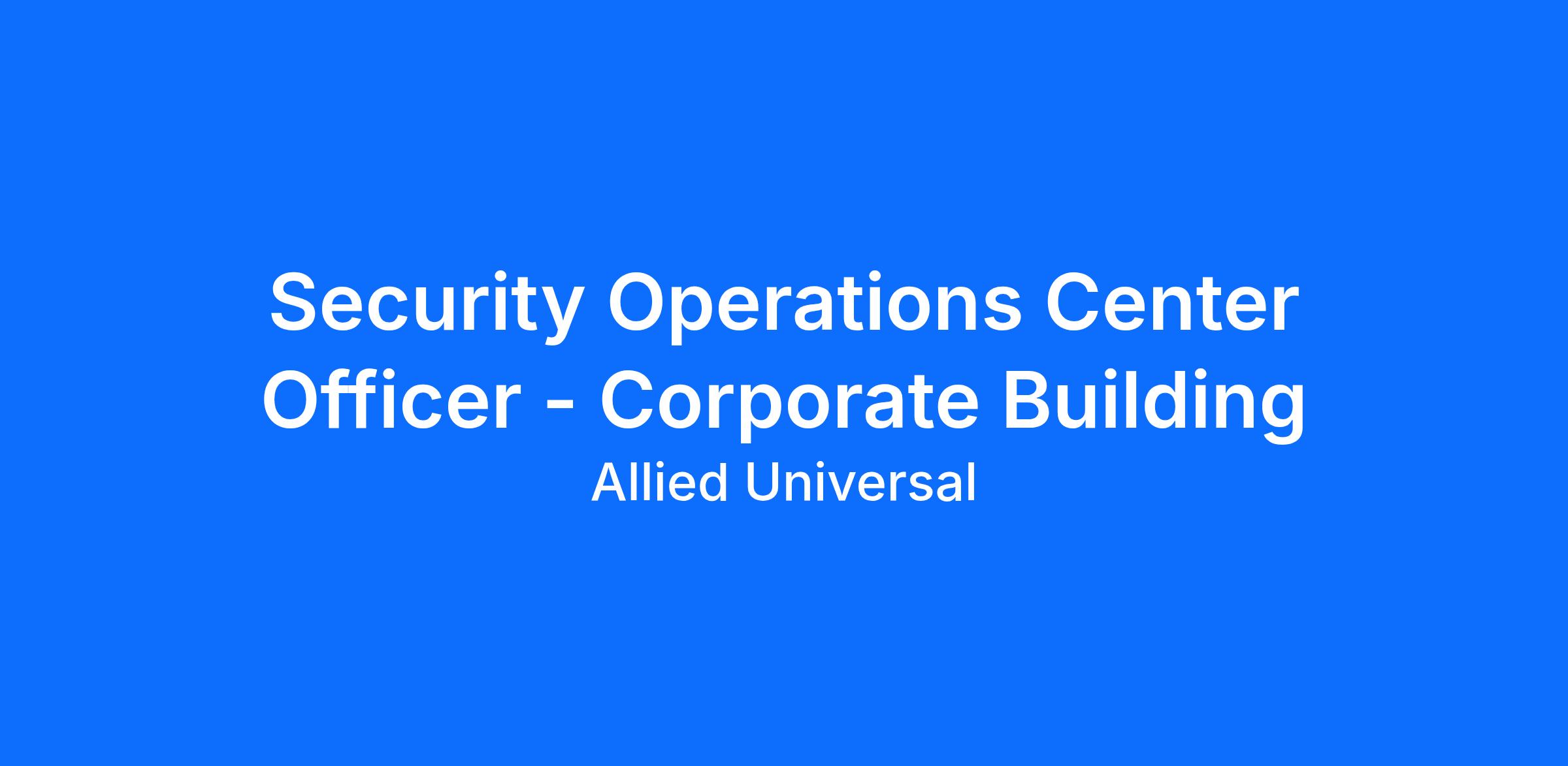 Allied Universal is hiring a Security Operations Center Officer to oversee a Corporate Building in the Chelsea Area of Manhattan