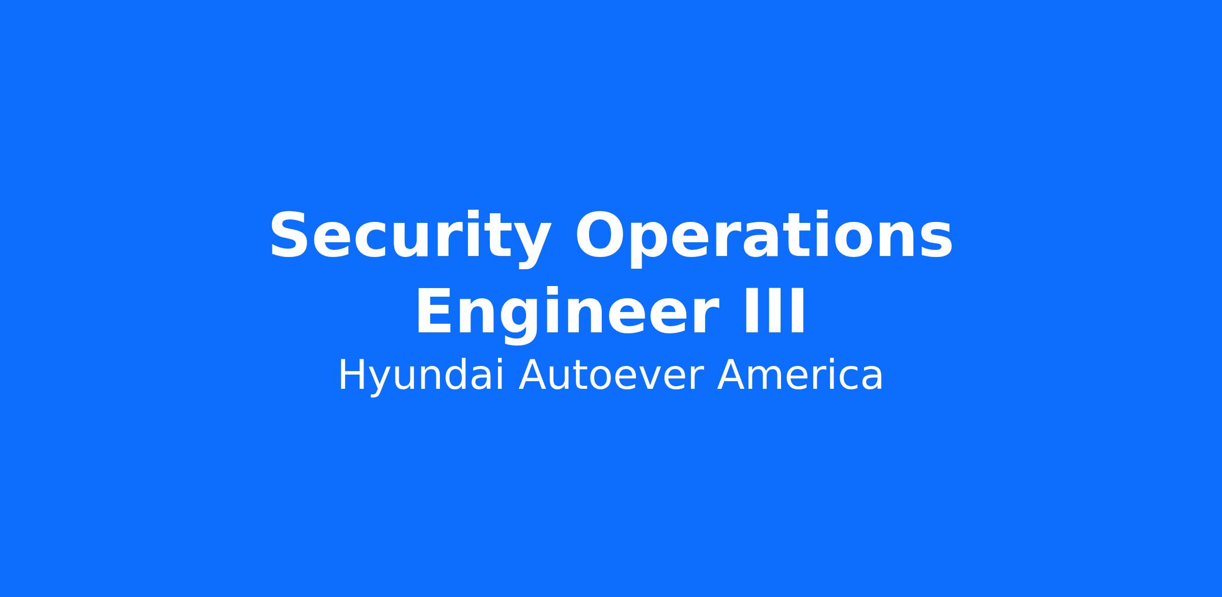 Team Culture: The Security Engineer III is responsible for protecting Hyundai AutoEver America’s information systems and infrastructure by implementing, managing, and enhancing a wide range of enterprise security technologies. The role spans security engineering, network security, and security operations—supporting incident response, vulnerability management, security assessments, risk mitigation, and cross‑functional collaboration to maintain a secure and resilient environment.