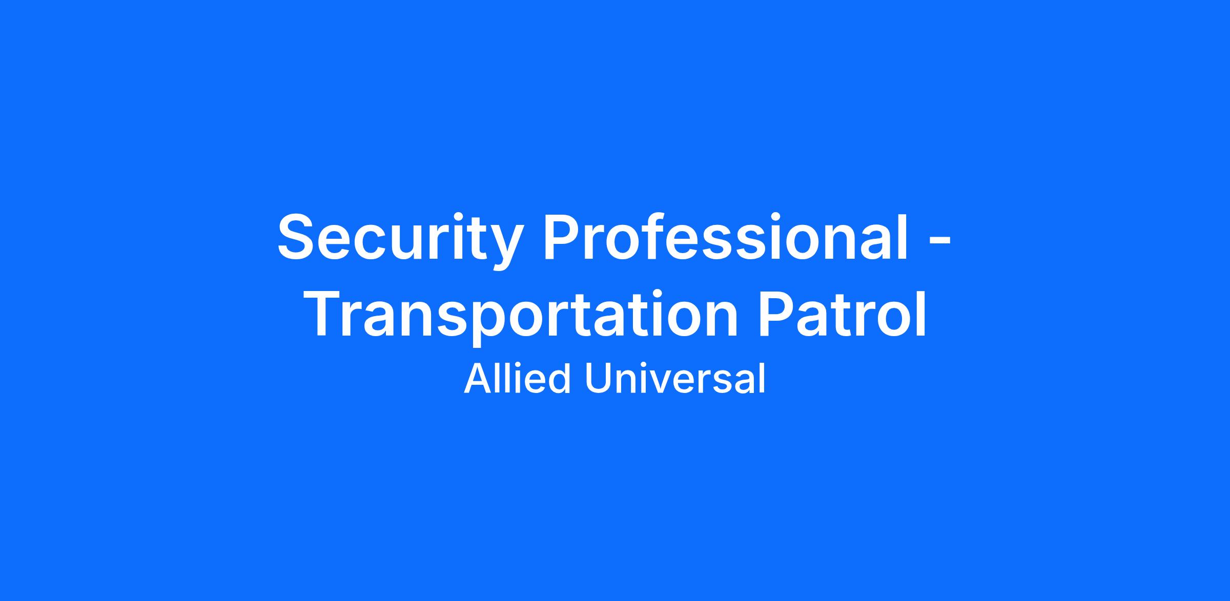Allied Universal®, North America’s leading security and facility services company, offers rewarding careers that provide you a sense of purpose. While working in a dynamic, welcoming, and collaborative workplace, you will be part of a team that contributes to a culture that positively impacts the communities and customers we serve.