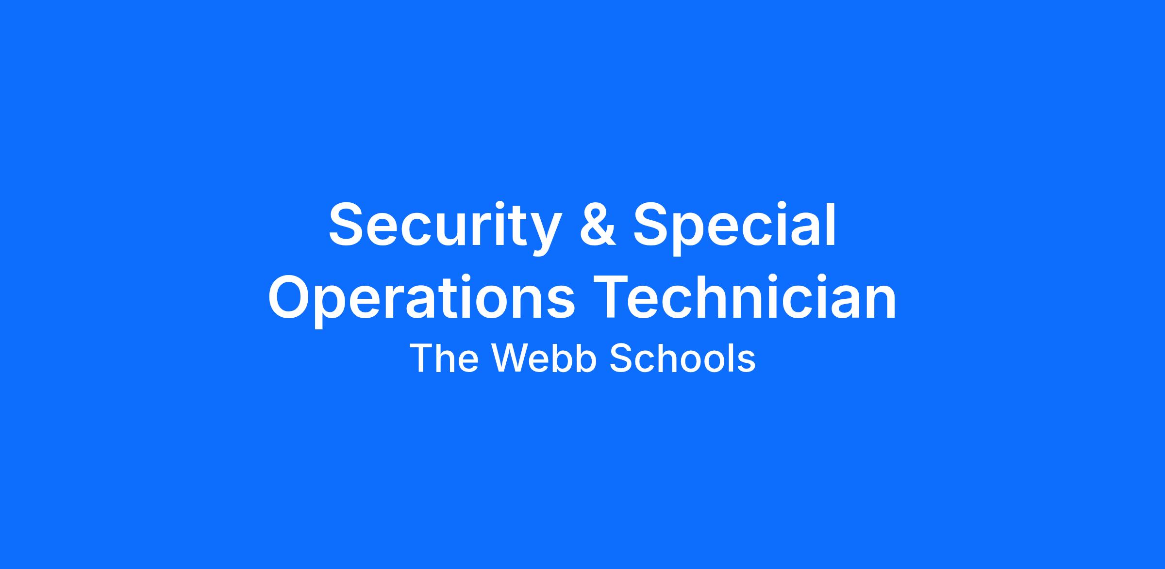 The Webb Schools seek a dynamic, inventive, and experienced professional to serve as Security & Special Operations Technician at a time of great promise. You will be responsible for advancing The Webb Schools’ mission and values through providing the security and general support for the campus community by performing the essential duties listed below. The officer represents the school and provides security for visitors, guests, parents, employees, and vendors.