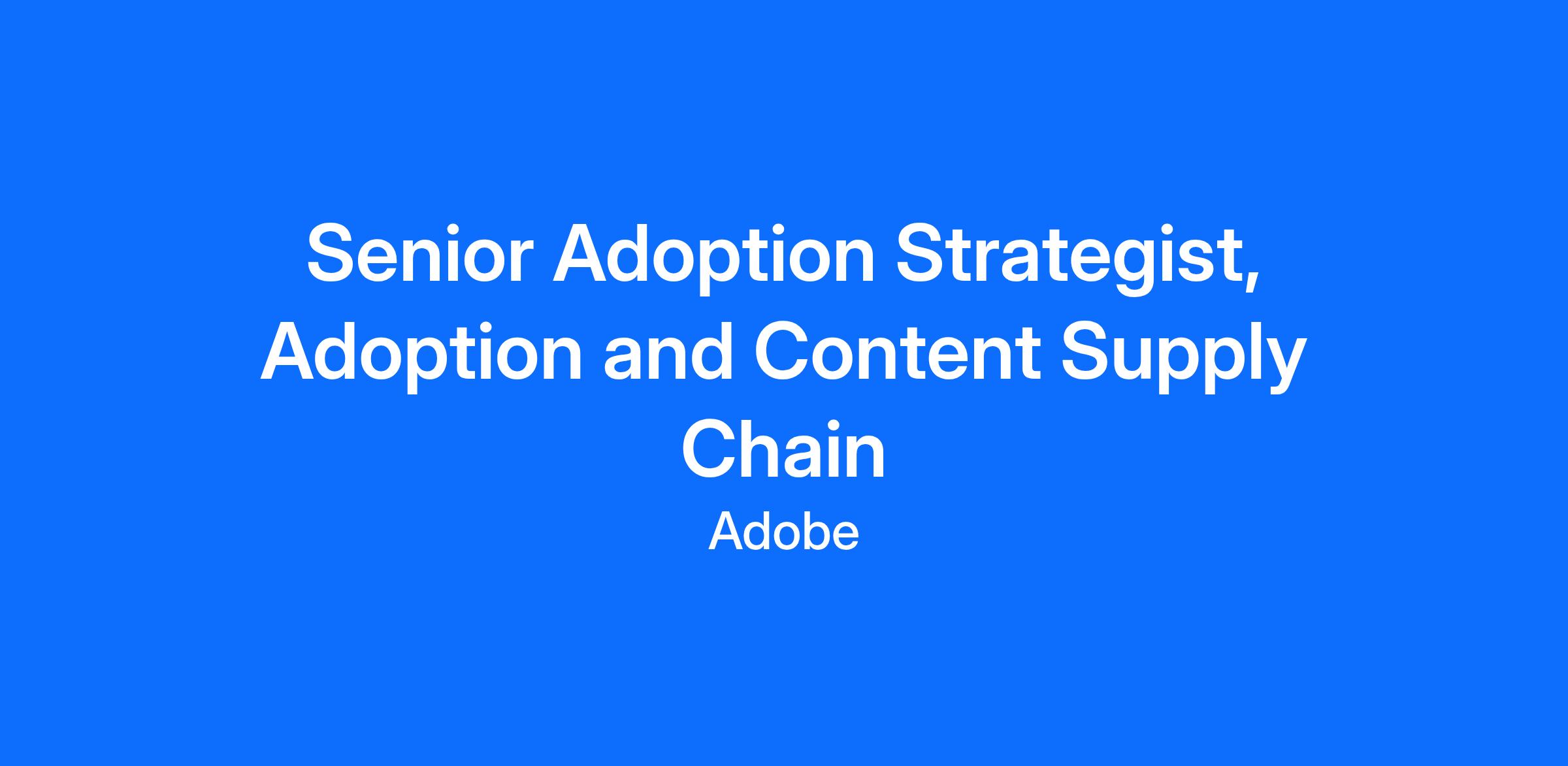 Adobe Customer Solutions is seeking a Senior Adoption Strategist (L4) with deep expertise in change management and Content Supply Chain (CSC) to lead adoption, organizational readiness, and sustained value realization for enterprise customers.