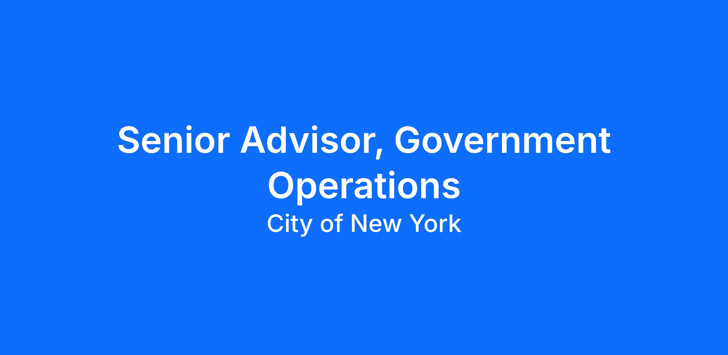 Reporting to the Chief of Staff to the Deputy Mayor for Operations (DMO), the Senior Advisor, Government Operations will be responsible for the following: