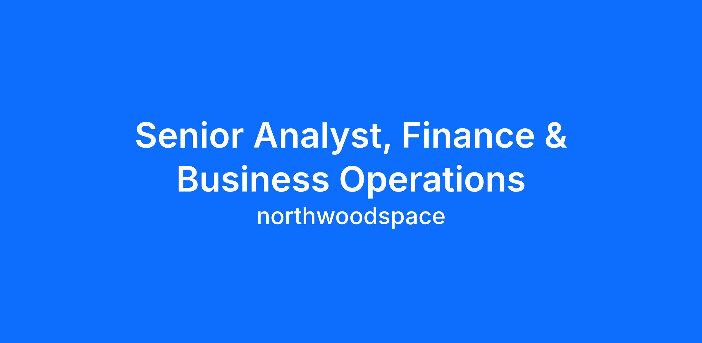 Northwood is looking for a Senior Analyst, Finance & Business Operations to define and drive the cost structure of our global ground network.
