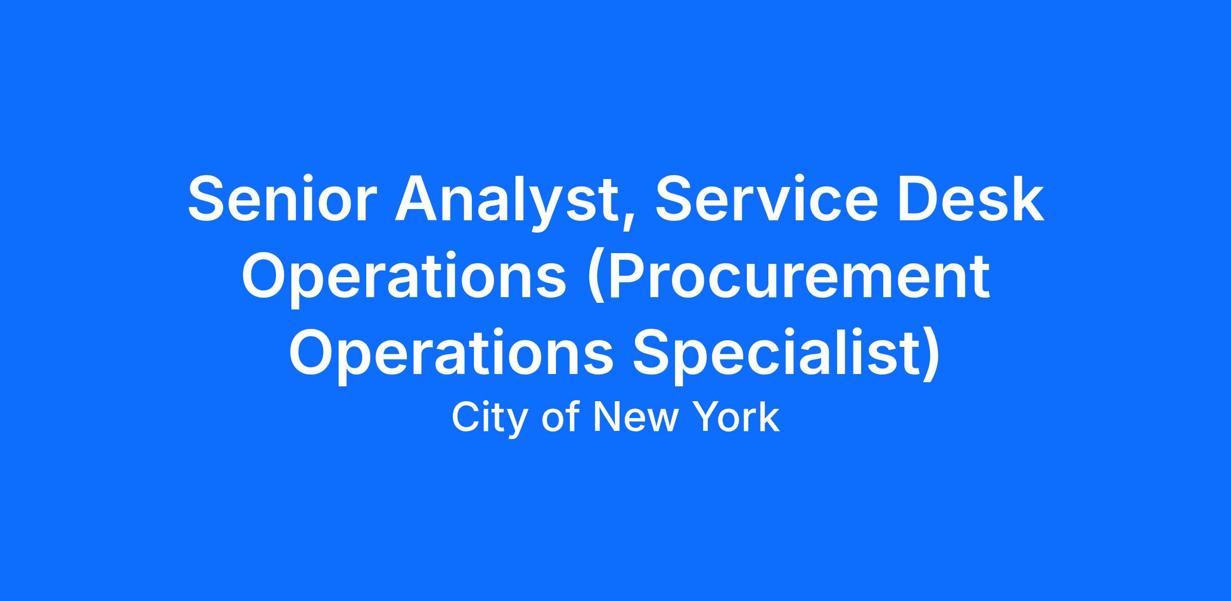Service Desk Operations is seeking a Senior Analyst / Procurement Operations Specialist. Duties include: