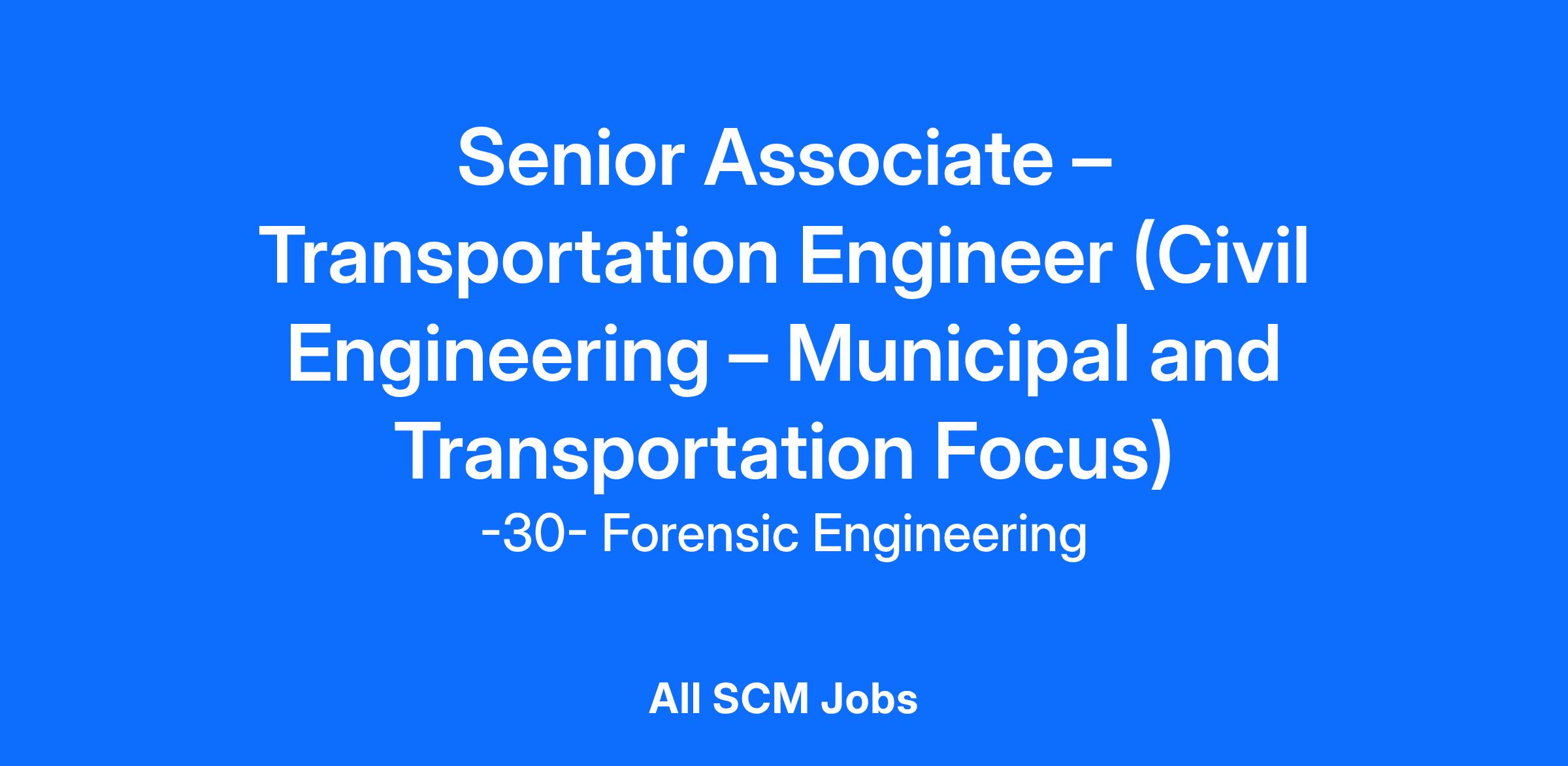 Senior Associate – Transportation Engineer (Civil Engineering – Municipal and Transportation Focus)