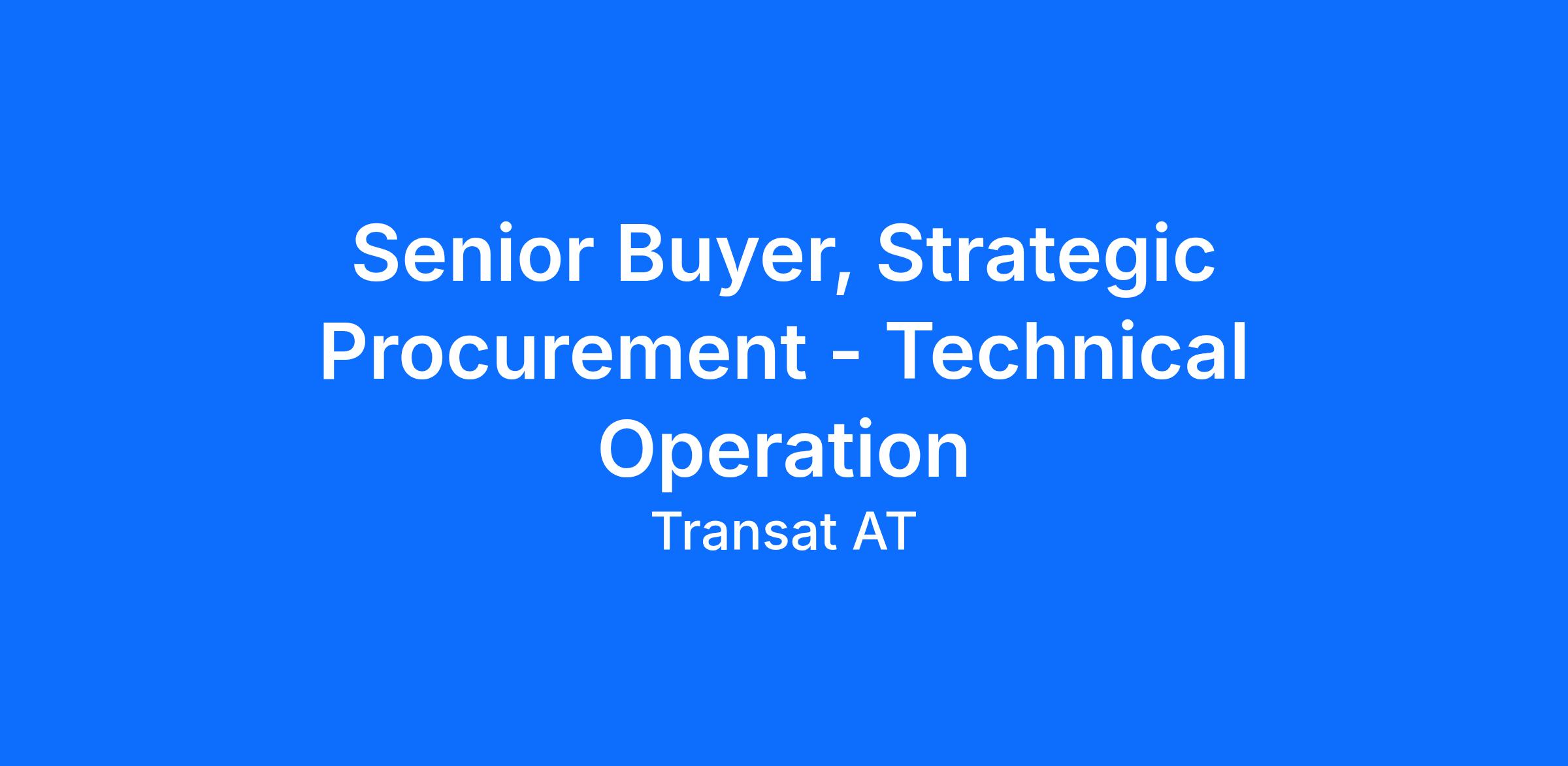 The senior buyer will be responsible for evaluating, establishing and executing the procurement strategies most appropriate to the company’s objectives for the purchasing of Technical Operations, while respecting the policies of the organization. The agreements that will be put in place will optimize the total cost of acquisition, maintain or improve the quality of the products and/or services required as per the timeline while minimizing business risks.