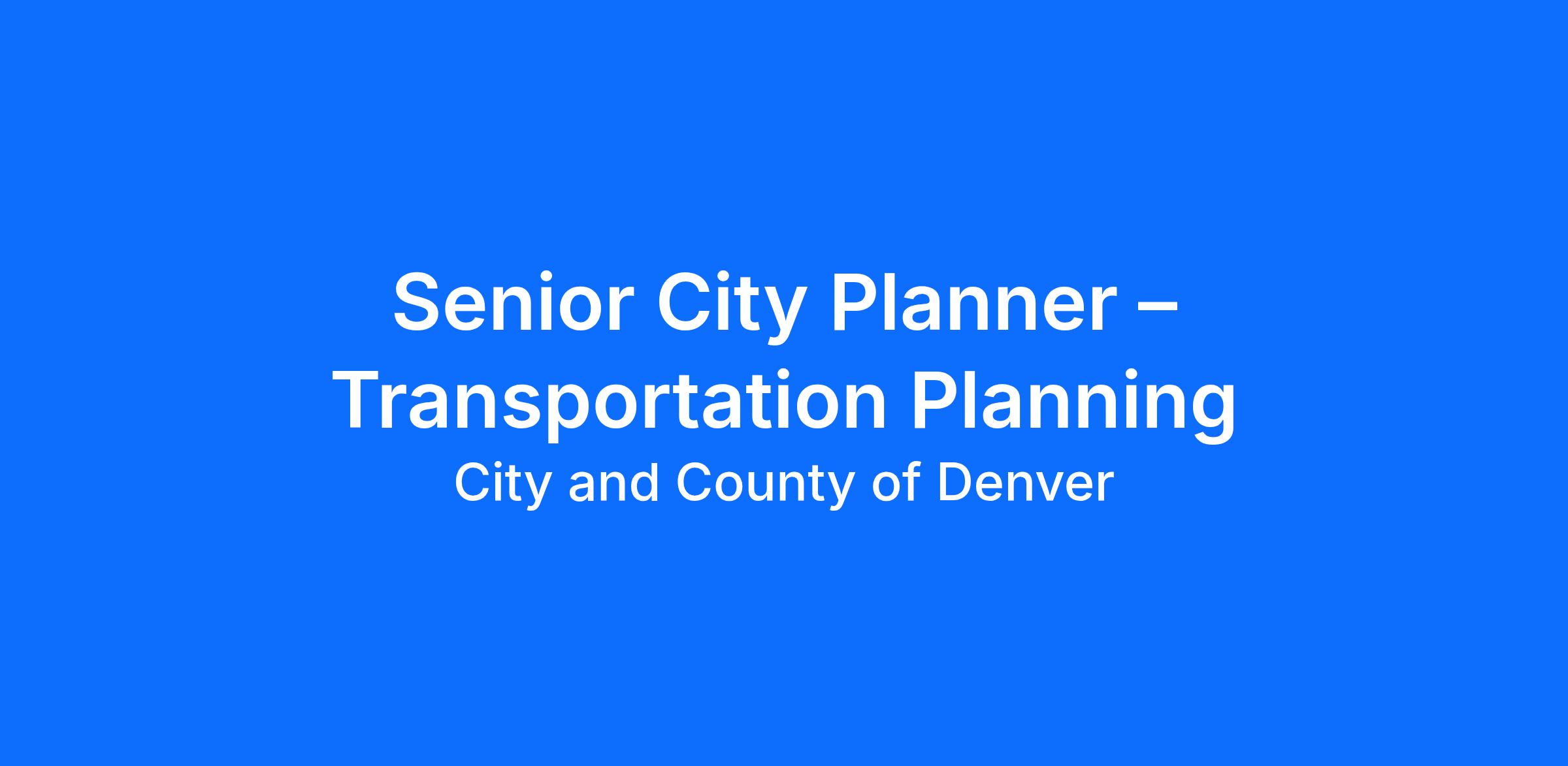 DOTI Transportation Planning is seeking to hire up to three Senior City Planners with experience and expertise in multimodal transportation planning, with a focus on bicycle, pedestrian, traffic safety, transit, transportation demand management, private development review, and complete streets-related projects. Senior City Planners will support the implementation of Denver Moves Everyone (DME), the City’s strategic transportation plan, by managing multimodal transportation plans and projects, conducting research and studies on active transportation, managing data collection, and producing reports on multimodal transportation that advance DME’s vision and goals. Two positions will more focus on managing the delivery of multimodal projects. One position will be involved in the creation and implementation of employer-based and neighborhood-focused Transportation Demand Management (TDM) initiatives, managing incentive programs, and driving outreach campaigns to encourage behavior change. All three positions will support general Planning Team functions as described further in this job ad.