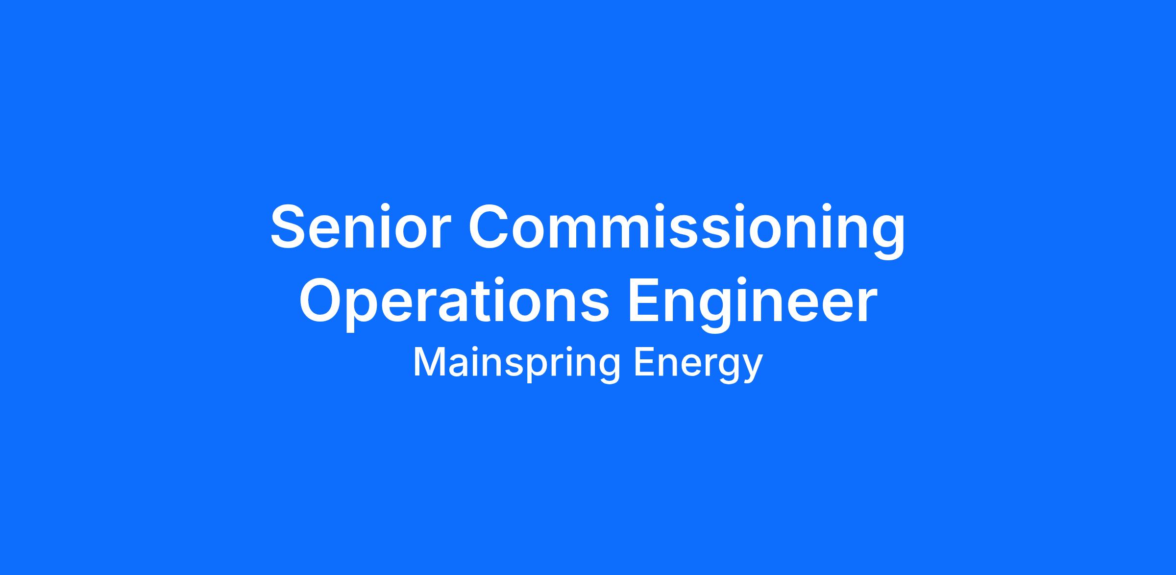 Mainspring Energy seeks a Senior Commissioning Operations Engineer to design and implement resilient, clean power solutions for Commercial & Industrial customers. This involves customer engagement, site visits, and configuring & starting up custom systems based on Mainspring's linear generators. This new role offers an opportunity to shape future workflows and is ideal for analytical engineers comfortable in dynamic settings. The Linear Generator is a complex system requiring a strong understanding of operations, systems engineering, and data analysis. We are looking for a driven and inquisitive individual to excel in this interdisciplinary position.