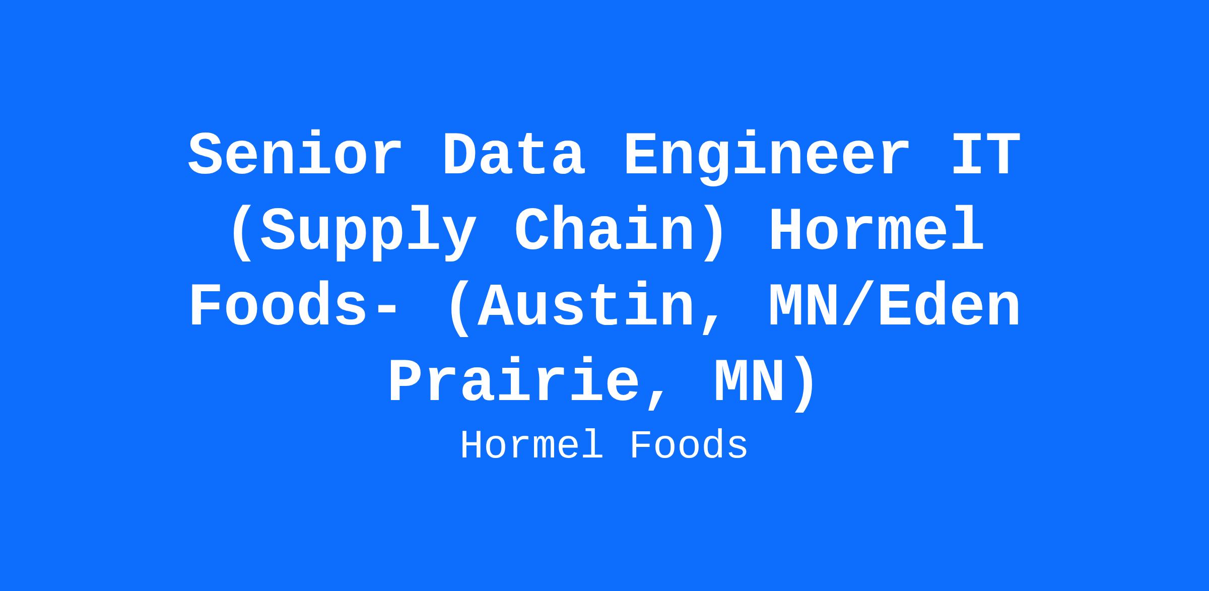 SENIOR DATA ENGINEER IT (SUPPLY CHAIN) HORMEL FOODS - (AUSTIN, MN/EDEN PRAIRIE, MN)