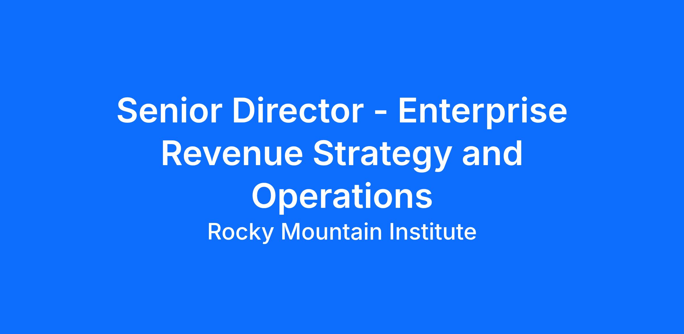 Lead enterprise-wide revenue strategy, multi-year planning, forecasting, and scenario analysis across all revenue streams, ensuring alignment with RMI’s organizational strategy and financial plans.