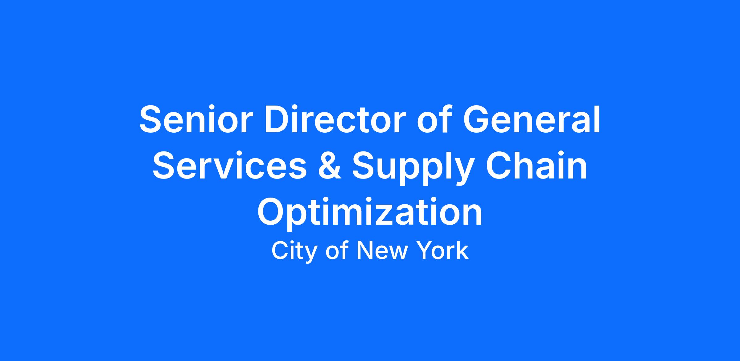 The Senior Director of General Services & Supply Chain Optimization (GSD/SCO) will manage and strategically plan all verticals within the General Services Department, including Building Services, Fleet, Imaging, Printing, and Mail Operations. In addition to leading these operational areas, the Senior Director will collaborate across the broader Supply Chain Management division to provide guidance and insight into policies and cross functional initiatives.