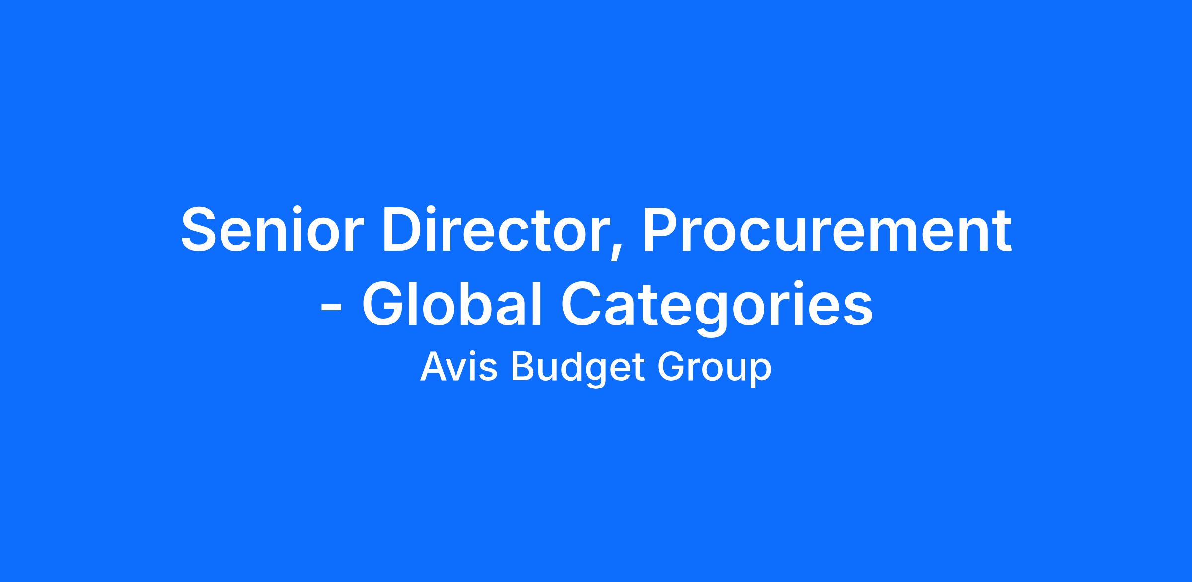 Reporting directly to the Global Vice President of Procurement, the Senior Director, Procurement - Global Categories will be responsible for driving procurement excellence across multiple markets across North America for Avis Budget Group. This role will focus on harmonizing procurement practices globally while respecting regional market dynamics and requirements.
