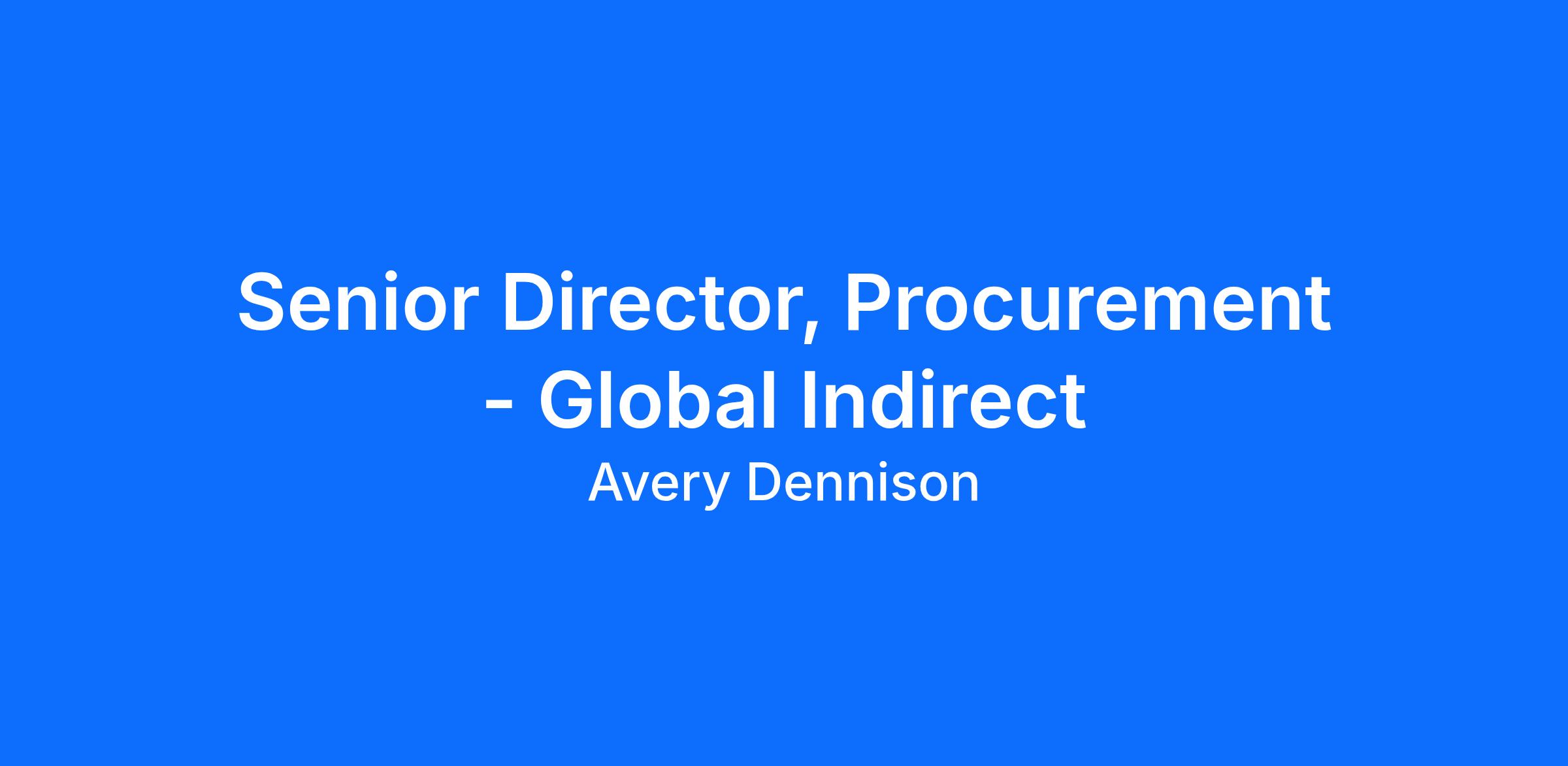 The Senior Director, Procurement - Global Indirect will be responsible for setting the strategic direction and enable execution around our global Indirect spend.