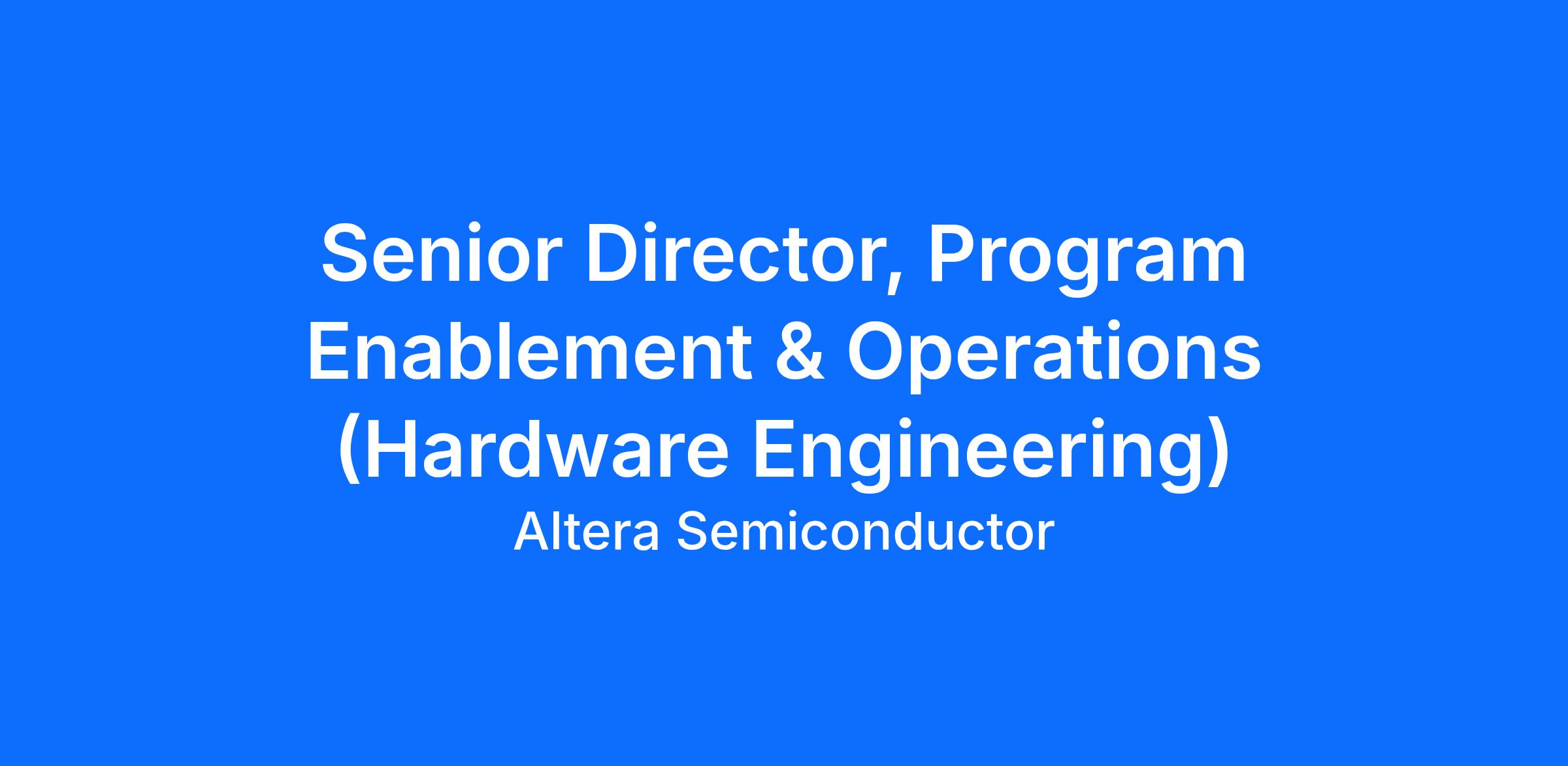 We are seeking a Senior Director of Program Enablement & Operations to serve as the operational nerve center of Hardware Engineering, owning end-to-end program execution across all silicon programs, from concept through production.