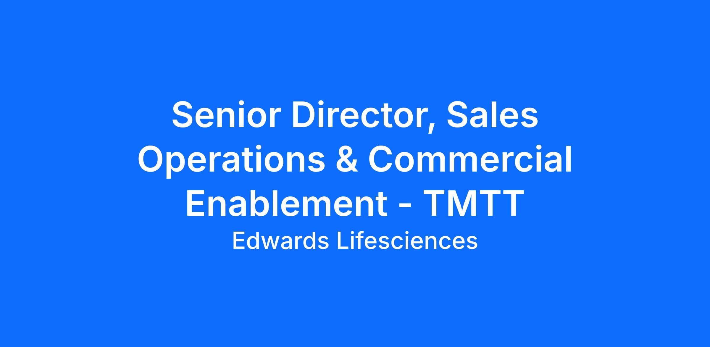 The Senior Director, Sales Operations & Commercial Enablement will be responsible for identifying and addressing the challenges and opportunities that face both sales and sales management to ensure success of TMTT's US Sales organization. This role will have daily contact with field sales and the sales leadership team for selling operations and long-term strategic planning. The role has responsibility for sales planning, pricing, inventory, technology tools to support field execution, and overall analytics to drive data-based decision making. This individual will lead the commercial planning and operations team that supports day-to-day operation of the TMTTT US Sales organization. The successful individual will build strong relationships across the organization and develop deep understanding of the Edwards business and the TMTTT portfolio. This role reports to Senior Vice President of the TMTT US Region and holds overall responsibility to manage commercial operations for US TMTT.