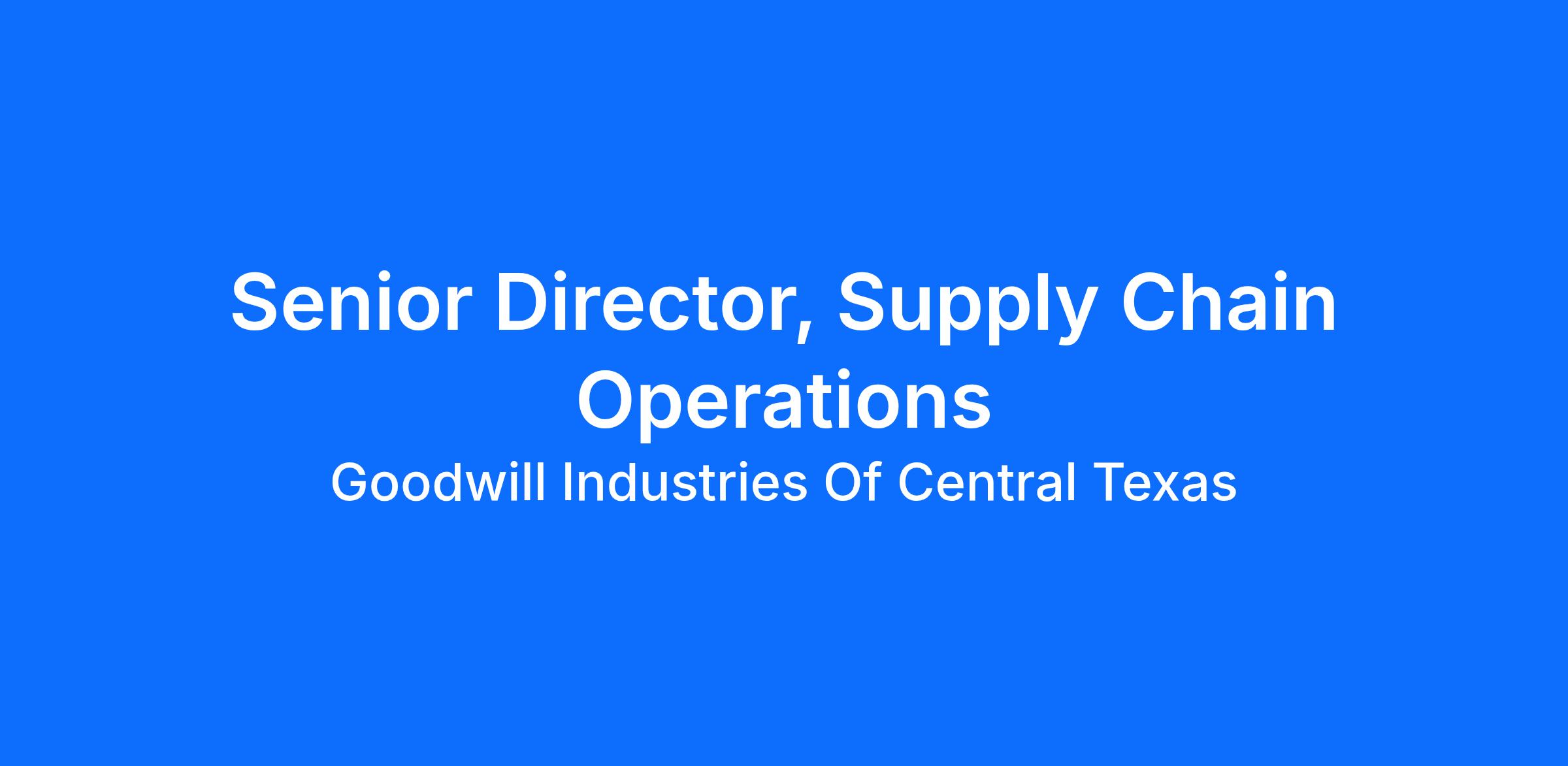 The Senior Director, Supply Chain Operations, is responsible for strategic initiatives and operational execution of all GCT logistics, transportation, aftermarket sales, recycling, donation acquisition, Attended Donation Centers, sustainability initiatives, Distribution Centers, and the Outlet Stores, including all staff and equipment.