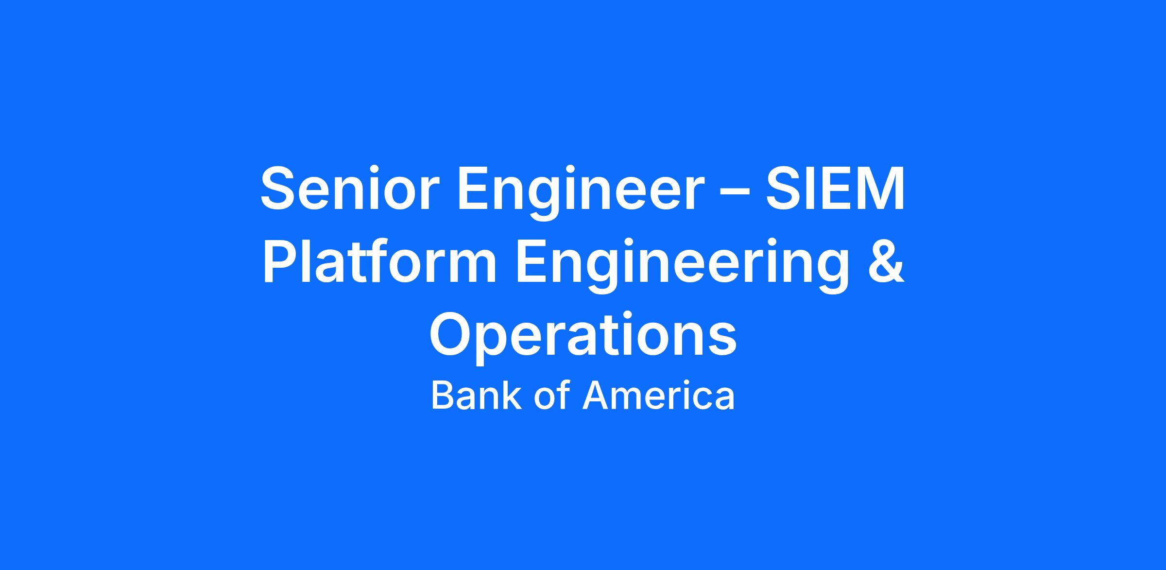 Senior Engineer – SIEM Platform Engineering & Operations