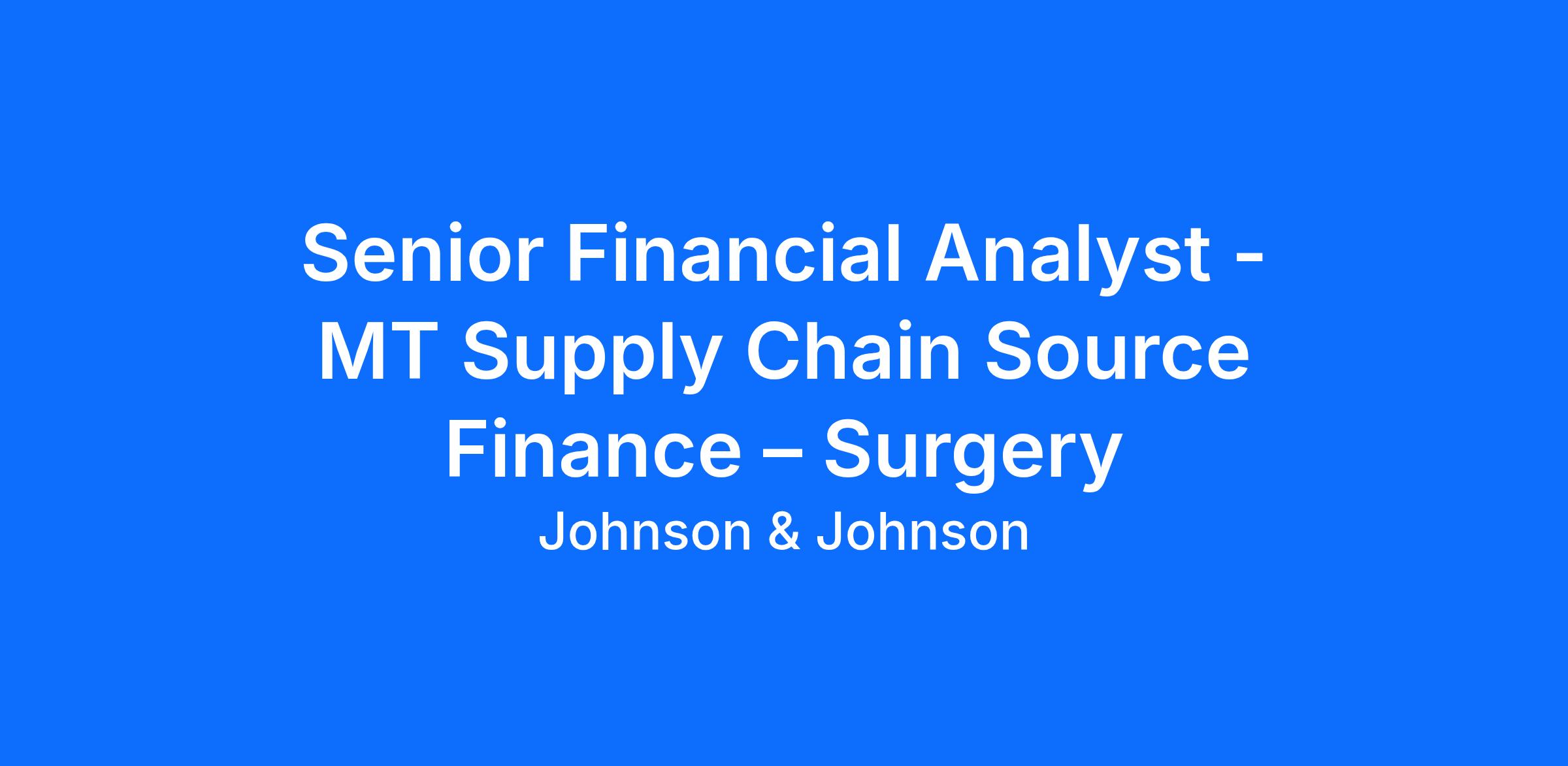 Johnson & Johnson MedTech Supply Chain (MTSC) Source Finance team is recruiting a proactive and results-driven Senior Financial Analyst to support the Wound Closure & Health (WCH), Aesthetics & Reconstruction (A&R) and BioSurgery (BIO) franchises within the Surgery business, which have annual direct material spend of over $550 million across a sophisticated global network of materials & suppliers.